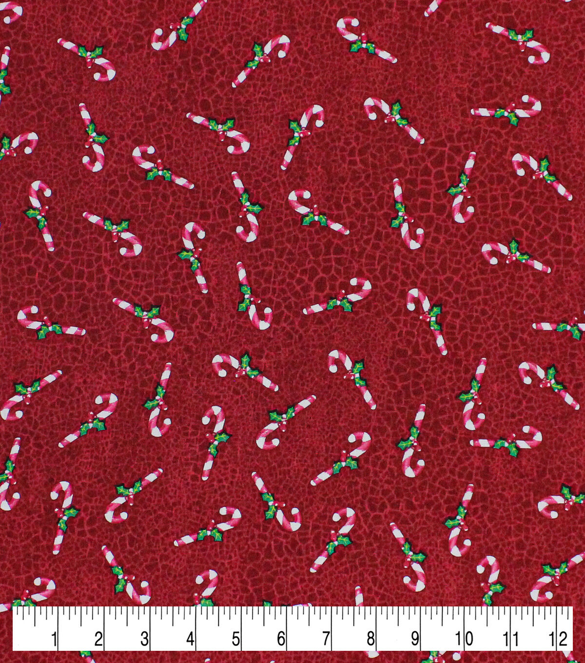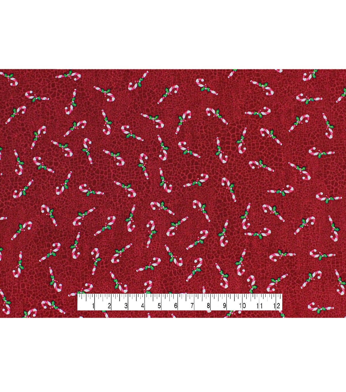 Candy Canes on Red Crackle Christmas Cotton Fabric
