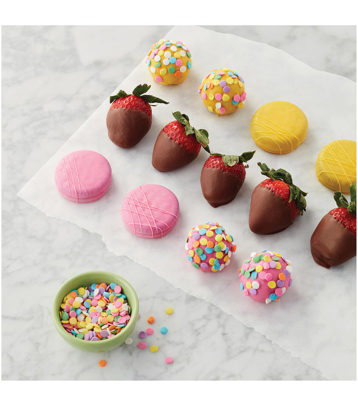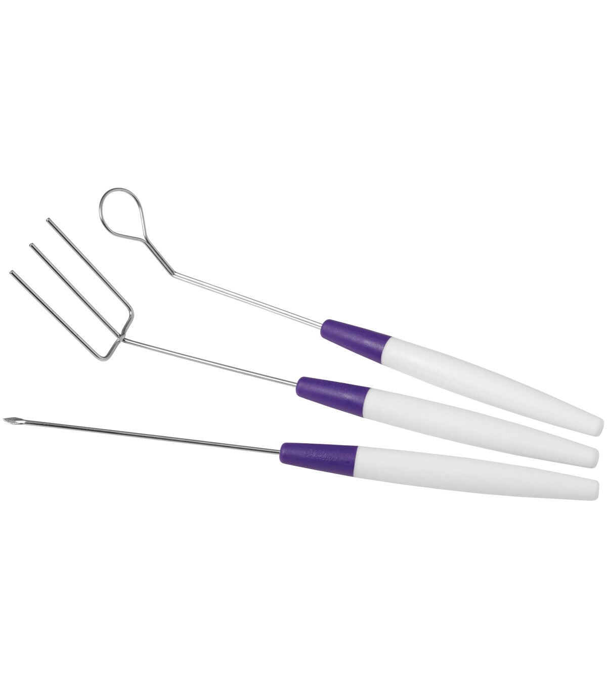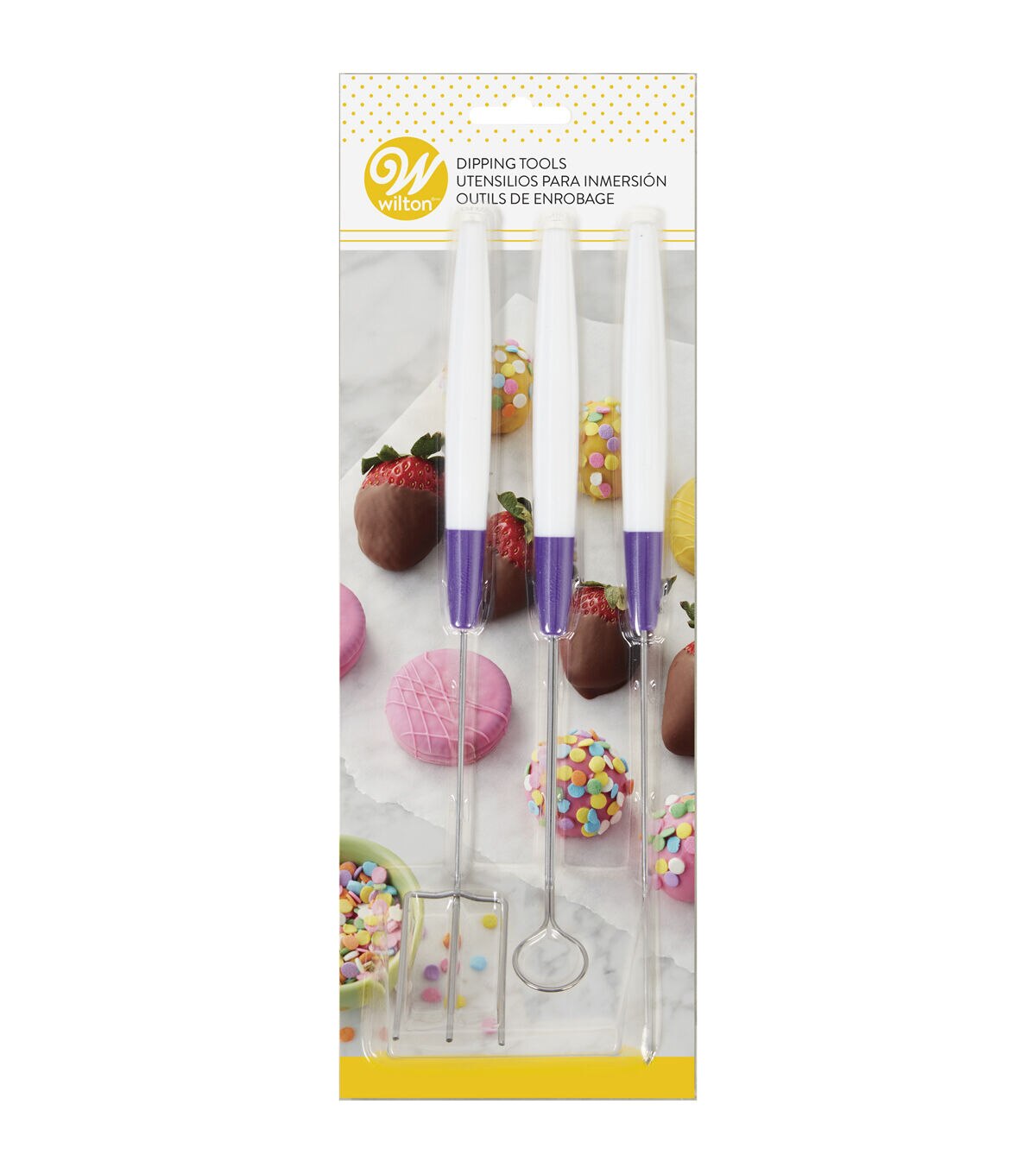 Making candy-dipped treats has never been this fun. Use this 3-piece Candy Melts candy dipping tool set to create candy-coated and chocolate-covered cookies, strawberries, pretzels, marshmallows and more. Candy making tool set includes 3-prong fork, spear and cradling spoon.