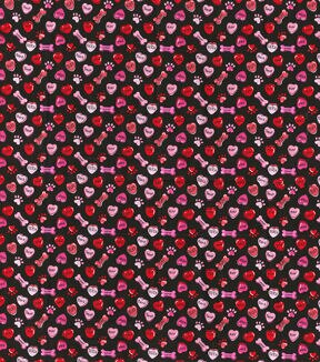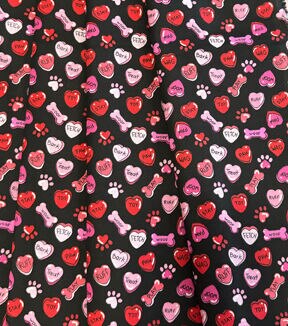 • Canine Candy Hearts on Black Valentine's Day Cotton Fabric
