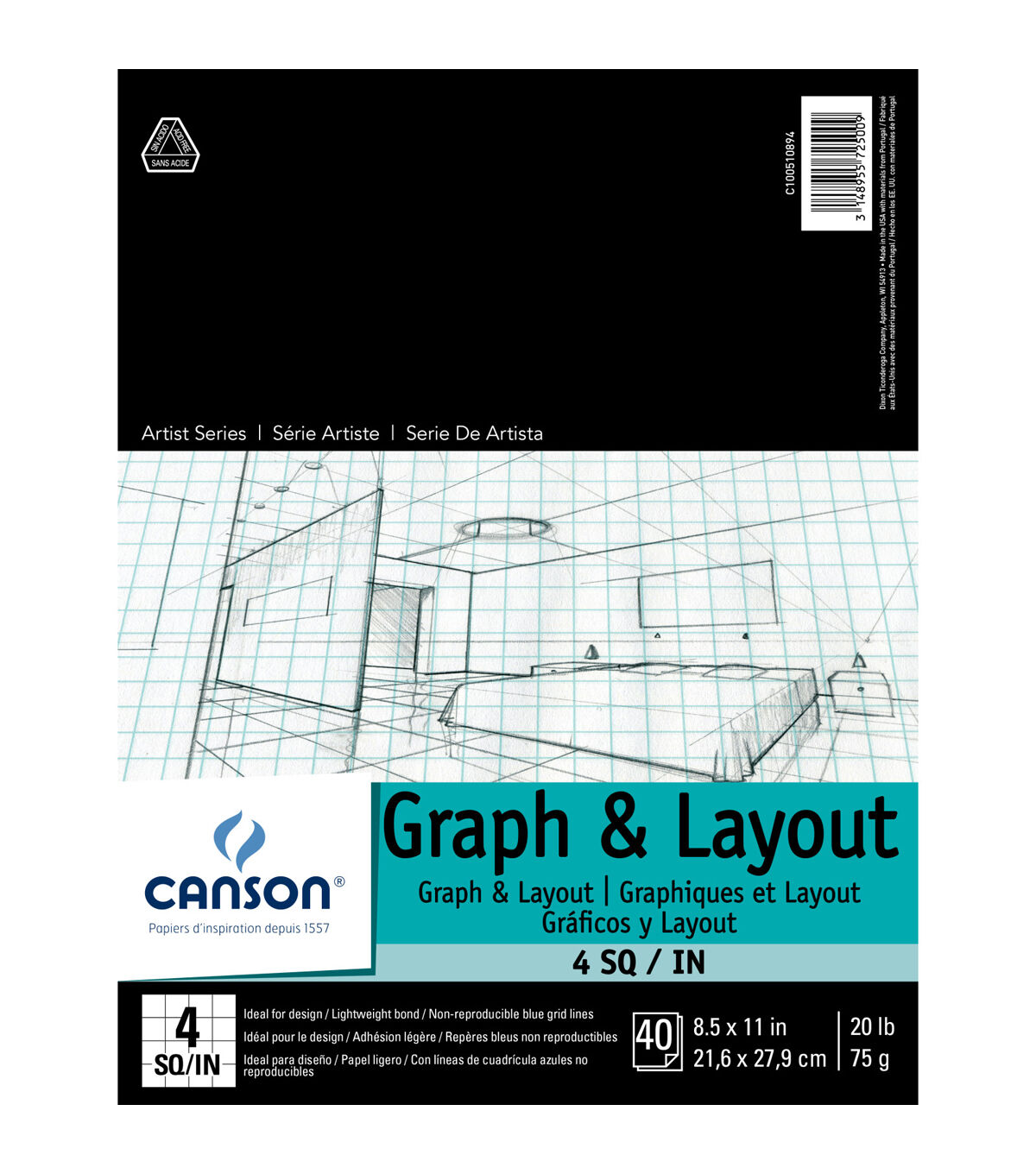 This pad features lightweight bond paper printed with a non-reproducible grid. Ideal for drafting layouts and creating precise compositions.