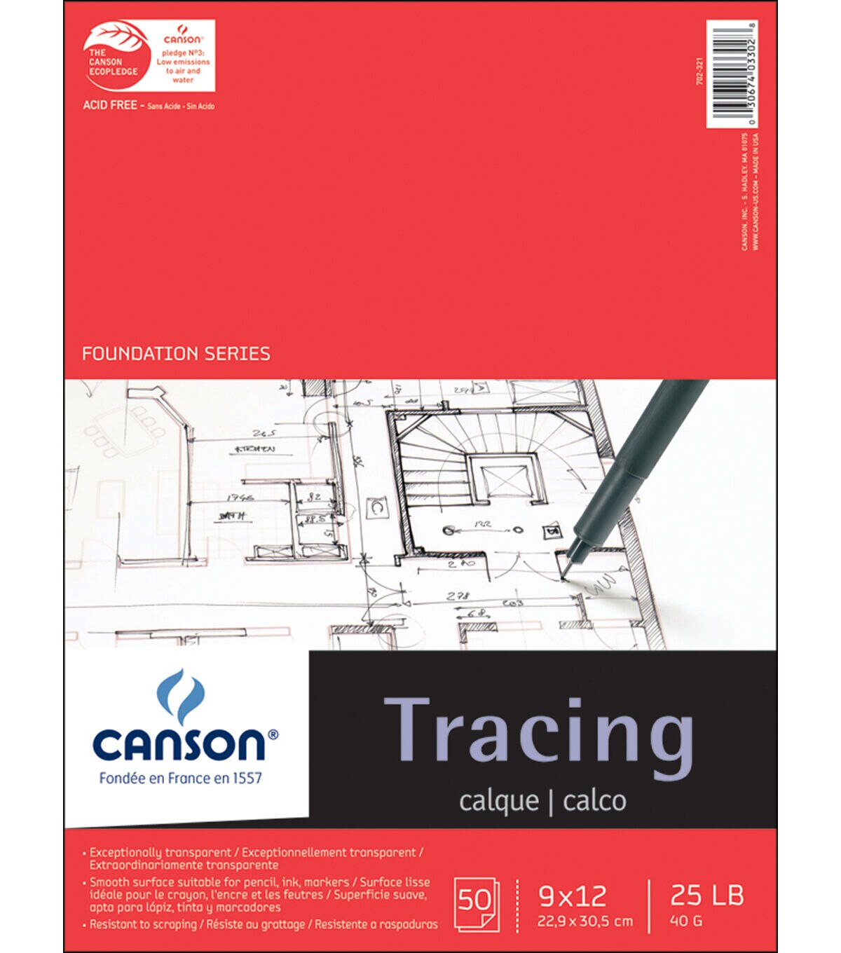 • Canson Foundation Series Tracing Paper Pad 9"X12" 50 sheets