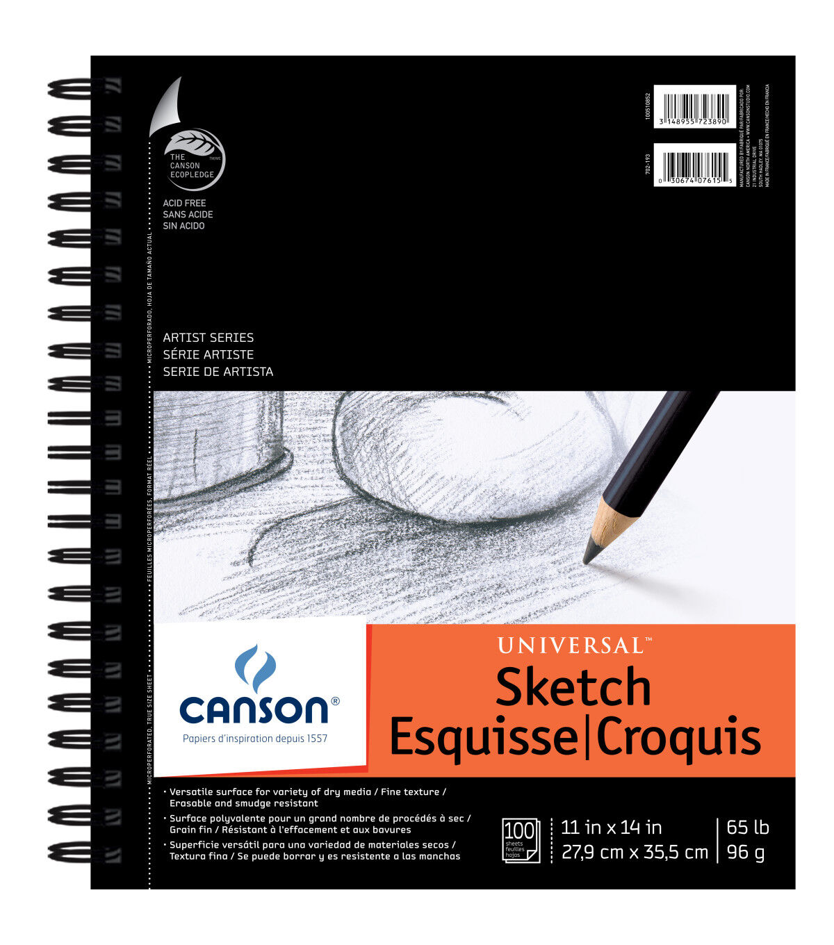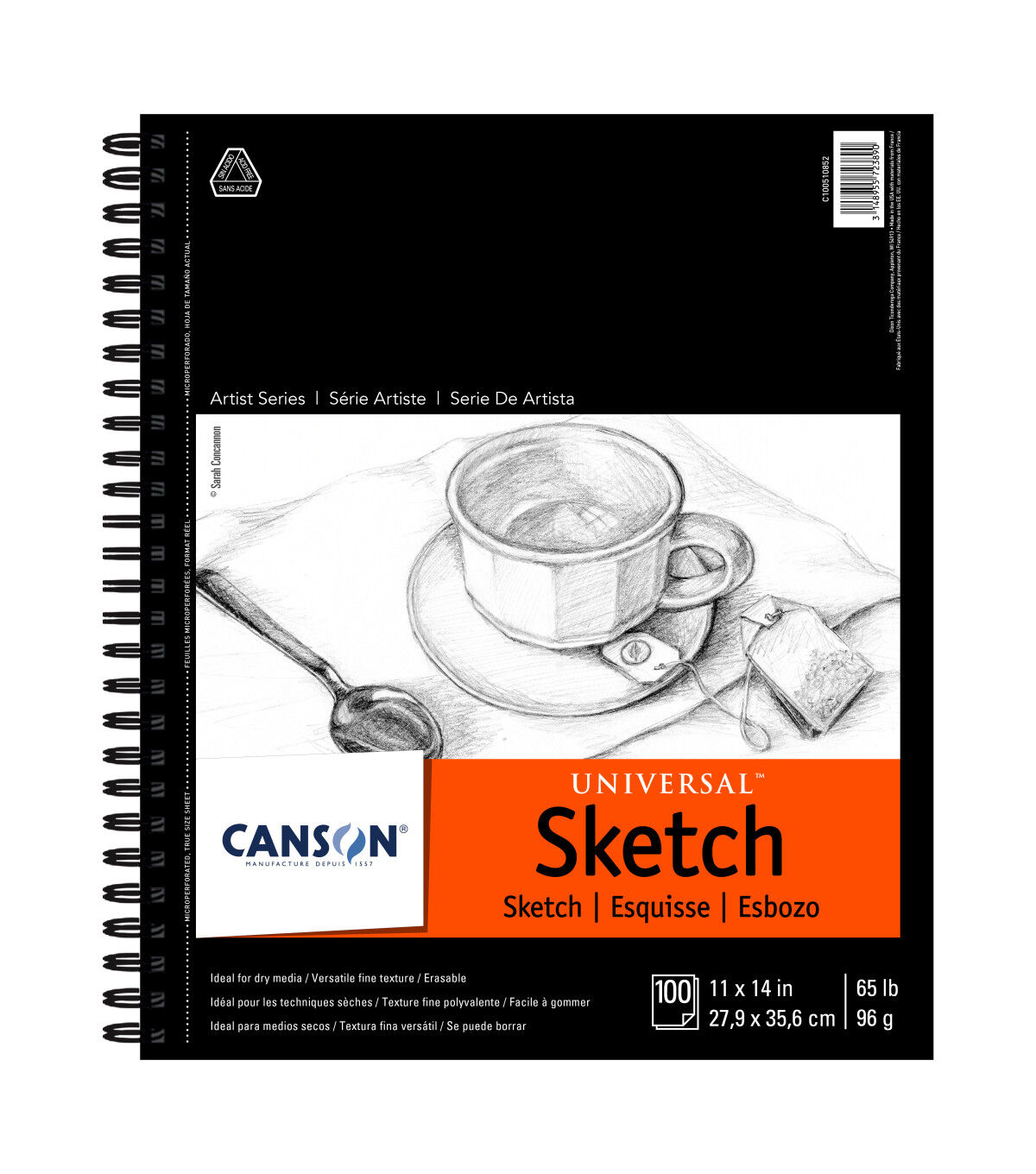 This pad features chlorine- and acid-free sketch paper and is ideal for all dry media. The heavyweight sketch paper has a nice tooth that erases cleanly and is smudge resistant. Micro-perforated edges allow you to remove finished work easily with no tears or catches.