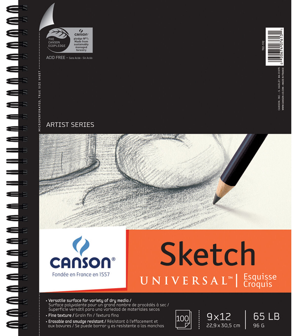 • Canson Universal Spiral Sketch Book 9"X12" 100 Sheets