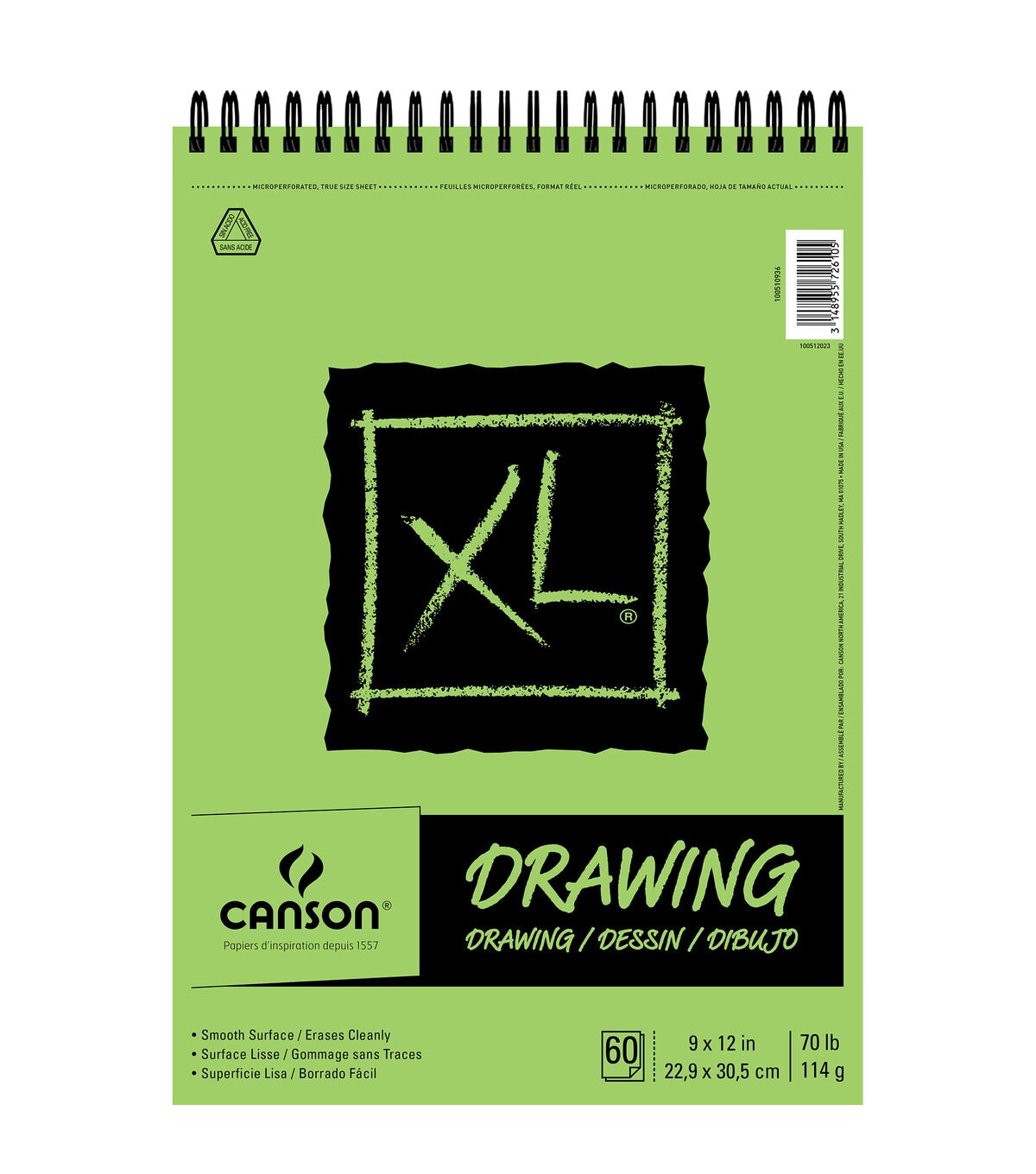 Combining performance and value, this Canson XL Drawing Paper Pad is ideal for beginners and students. This drawing pad features micro-perforated, opaque sheets that can be easily removed with a single pull. The medium tooth handles a variety of media. Lay the color on, blend, sketch and erase until you get it right.