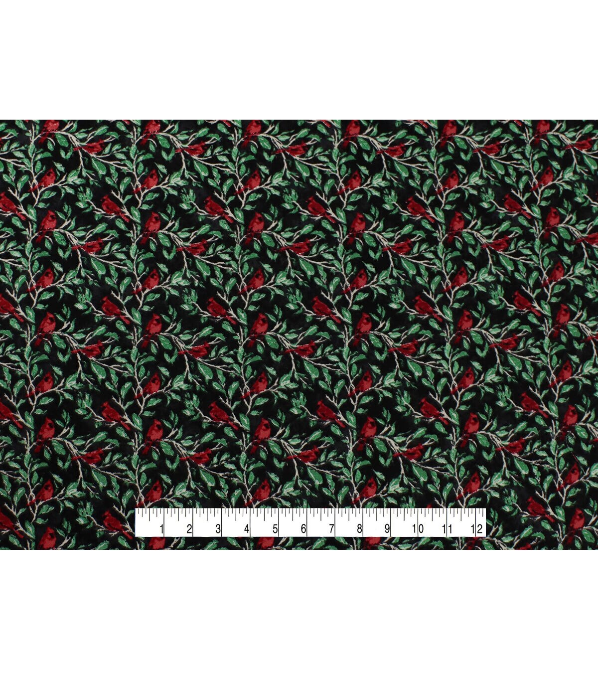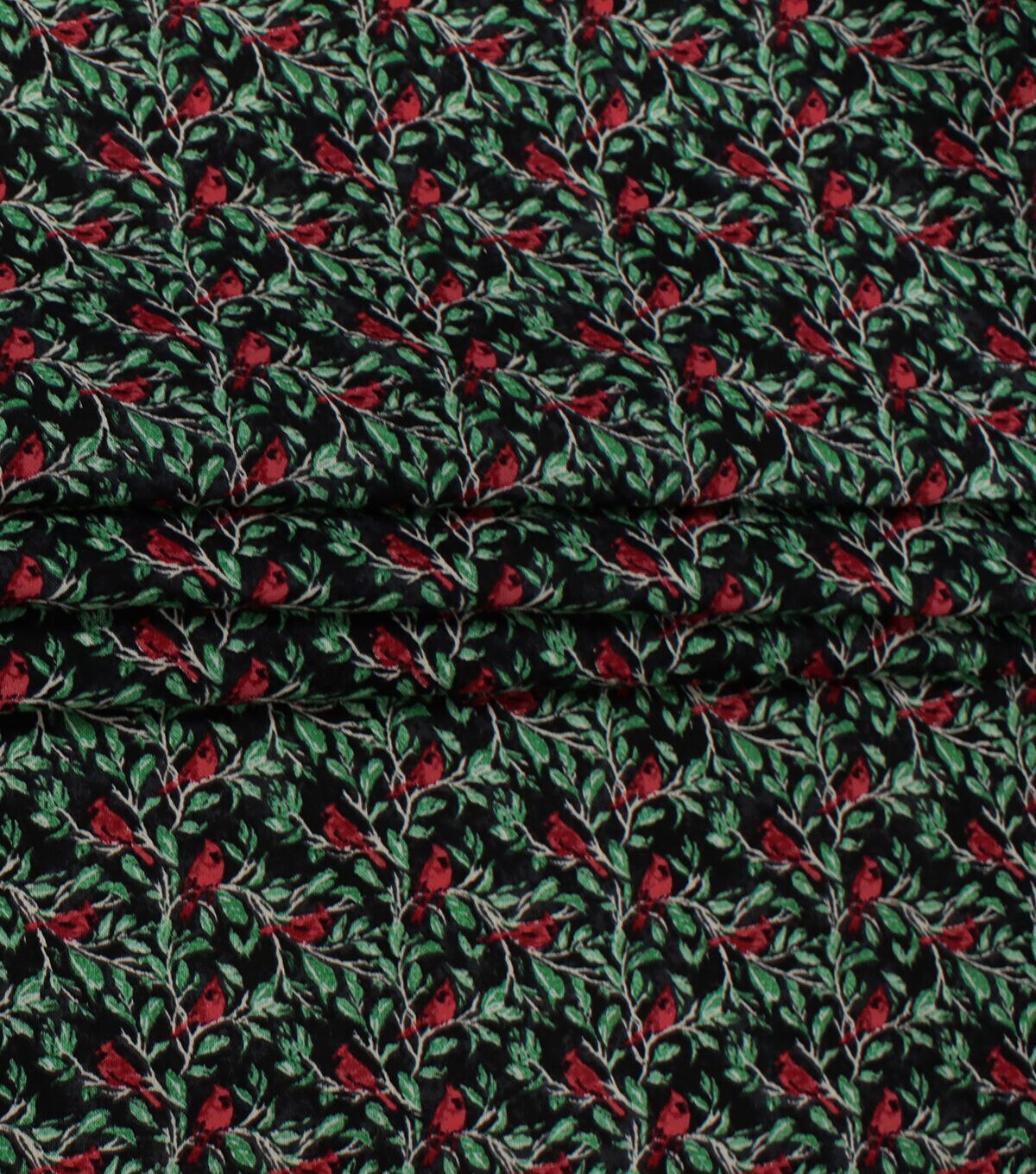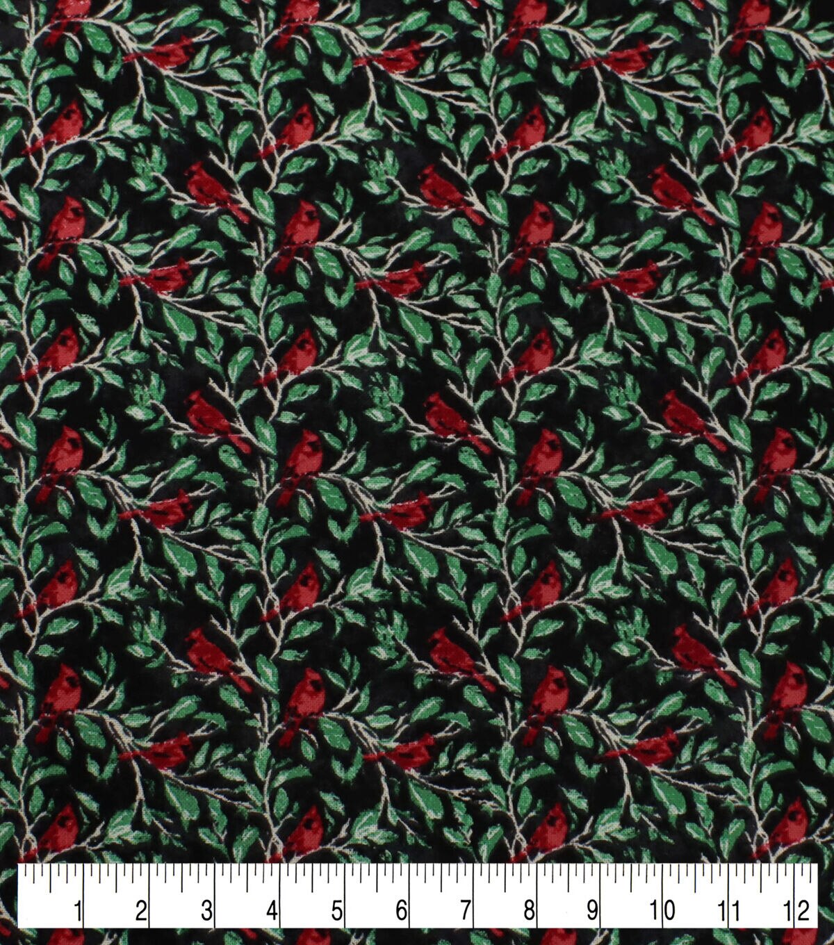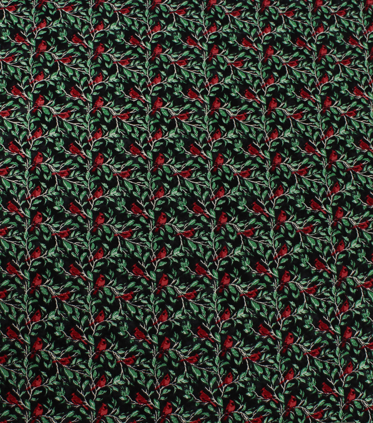 • Cardinals & Leaves on Black Christmas Cotton Fabric