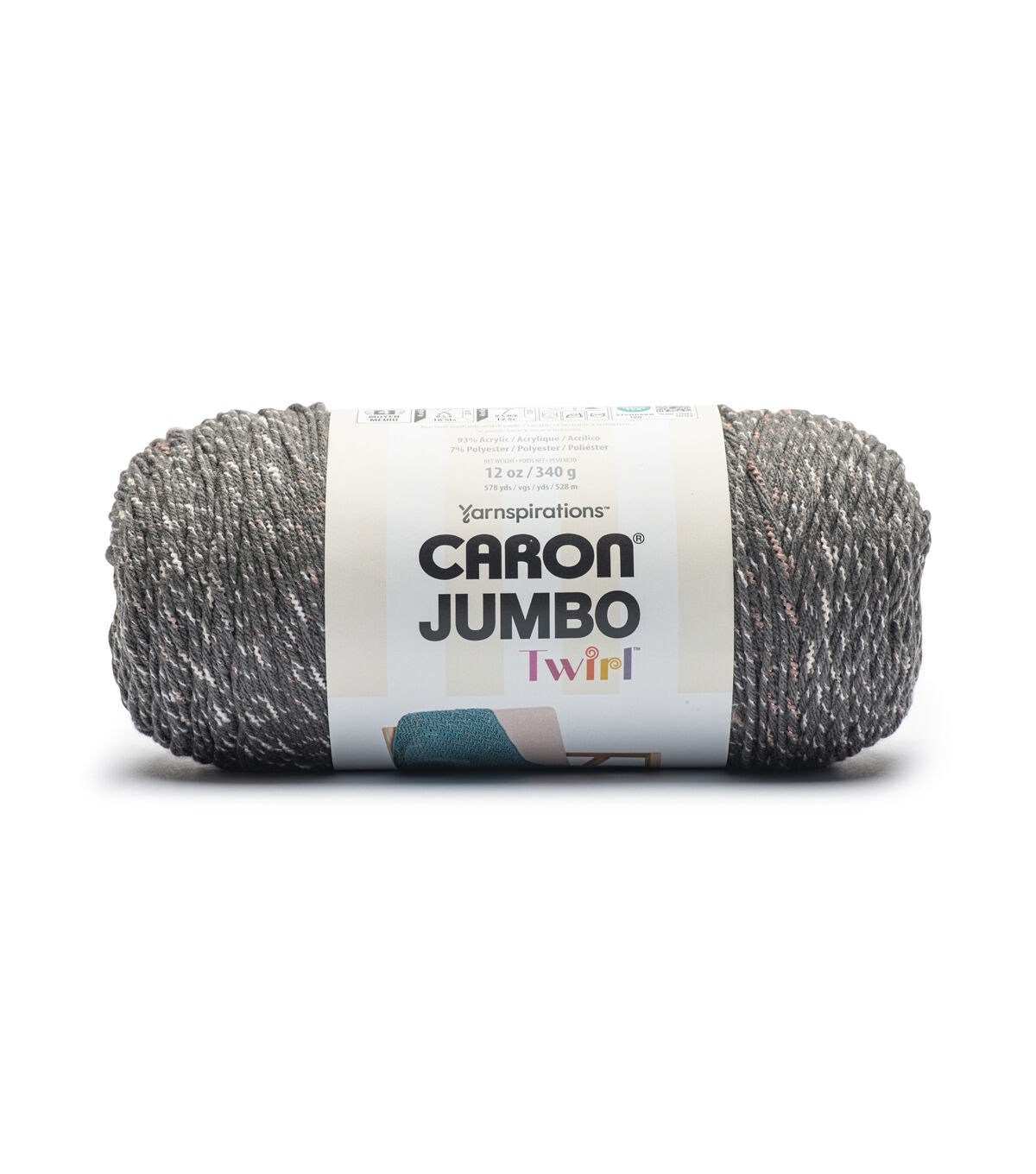 Introducing the New Caron Jumbo Twirl - where style is spun into every stitch. This versatile worsted weight, easy-care, economical big ball of Caron yarn adds a little burst of color that helps to create unique projects effortlessly. The ribbon is a component twisted within the 4 plies of yarn, making it durable and easy to work with. The subtle ribbon also provides a sophisticated distribution of color which is palatable for crocheters and knitters. Use less yarns for bigger projects. The Result? - less ends to weave in and allows projects to be completed quicker. Whether you're fashioning cozy blankets, stunning scarves, or fashionable accessories, this yarn is your creative canvas.