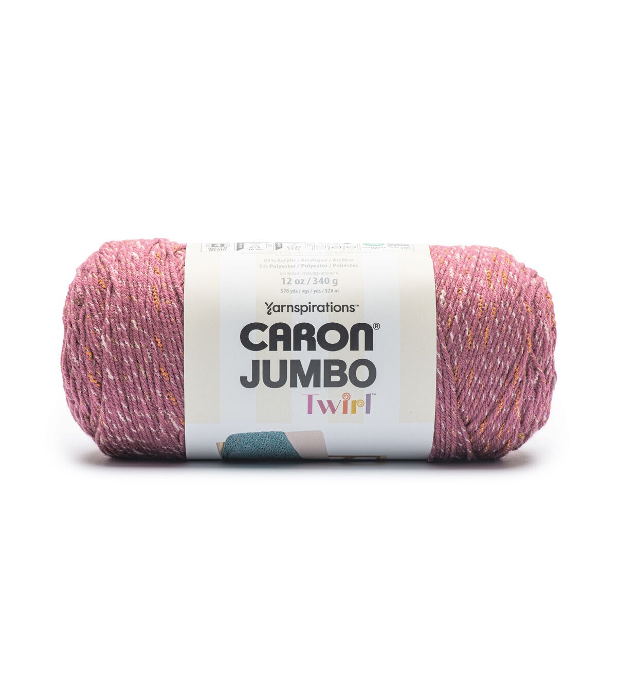 Introducing the New Caron Jumbo Twirl - where style is spun into every stitch. This versatile worsted weight, easy-care, economical big ball of Caron yarn adds a little burst of color that helps to create unique projects effortlessly. The ribbon is a component twisted within the 4 plies of yarn, making it durable and easy to work with. The subtle ribbon also provides a sophisticated distribution of color which is palatable for crocheters and knitters. Use less yarns for bigger projects. The Result? - less ends to weave in and allows projects to be completed quicker. Whether you're fashioning cozy blankets, stunning scarves, or fashionable accessories, this yarn is your creative canvas.
