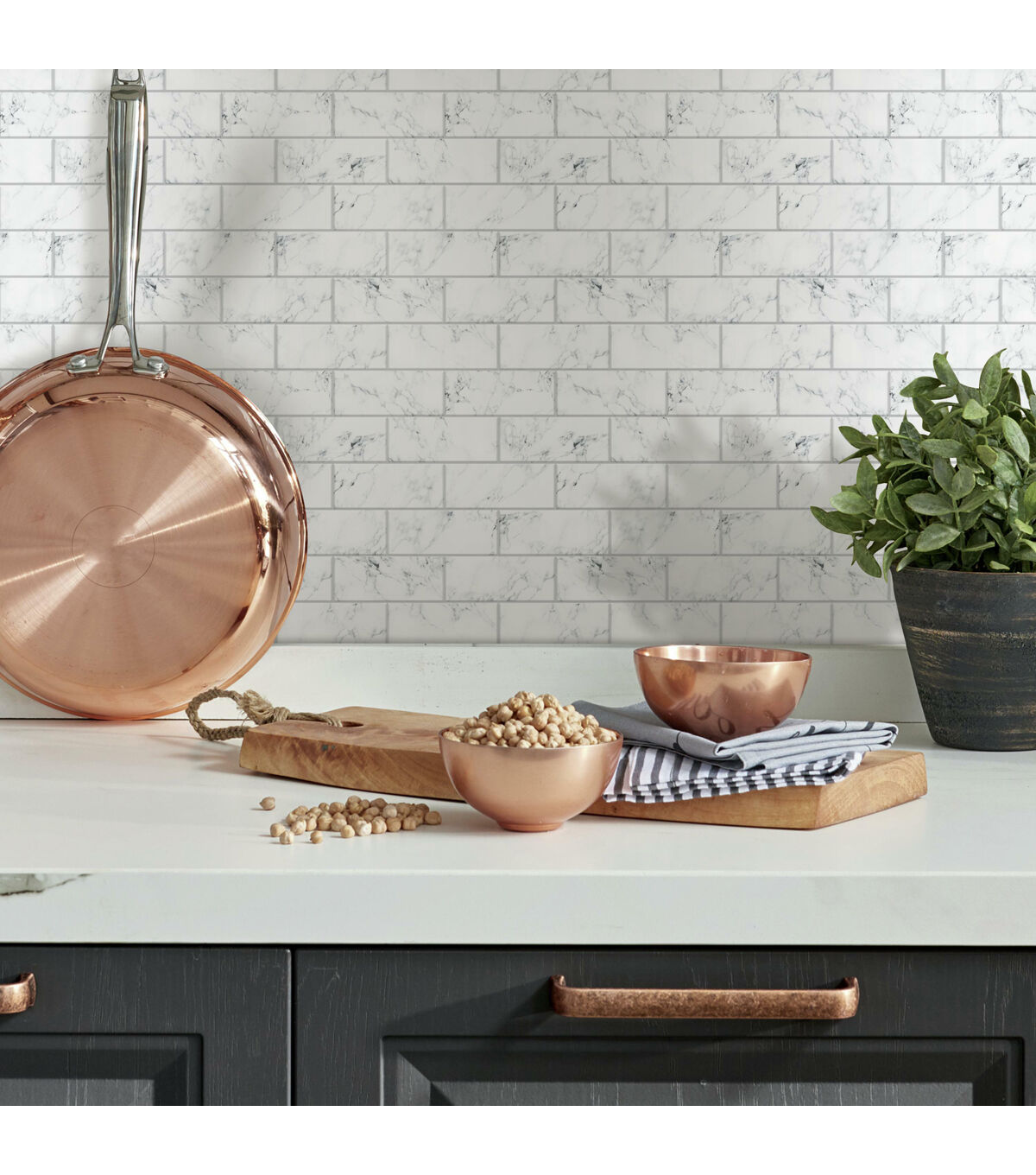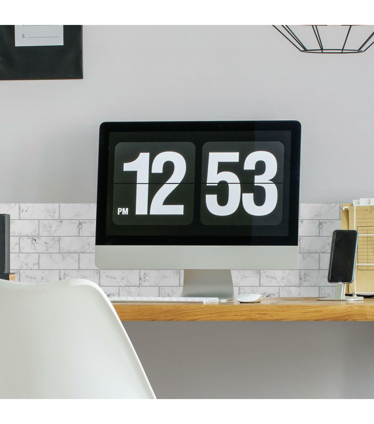 Easily apply the elegance of Italian marble with RoomMates Carrara Marble StickTiles. Classic Carrara marble is a timeless design for any area in the home and this carefully crafted marble faux motif brings ageless beauty to kitchen backsplash, baths, or bar areas. White with flecks of grey to black, these StickTiles have a 3D glossy finish giving you the look and feel of genuine designer tiles. But unlike real tiles, you do not need heavy equipment (such as a wet saw) to cut them, nor do you need messy grout or additional paste. Simply use a utility knife or scissors to trim to size and work around difficult areas like corners or outlets… and just peel and stick! These tiles are the go-to solution for do-it-yourself easy and affordable new backsplash décor installed with regular household tools. RoomMates StickTiles help you decorate in minutes. 4 Tiles 10.5 inch x 10.5 inch 2.45 sq. ft