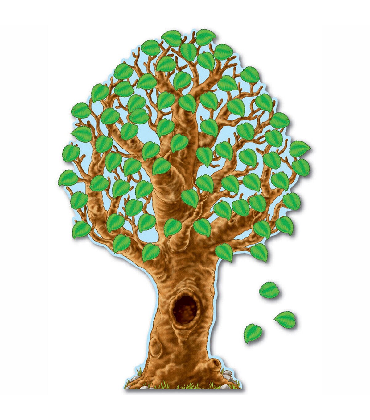 - Big Realistic Tree bulletin board set includes 69 leaves.