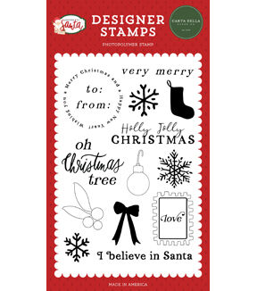 High quality stamps are perfect for cardmaking and scrapbooking. They add wonderful designs to a variety of projects greeting cards, scrapbook pages, gift cards, bookmarks and more. This pre-cut stamp has great detail and will make fantastic paper craft projects and so much more. The stamp is ready for you to use mounted to an acrylic block (sold separately) or on its own. This package contains Carta Bella Stamp Set Letters To Santa, I Believe In Santa. Made in the USA.