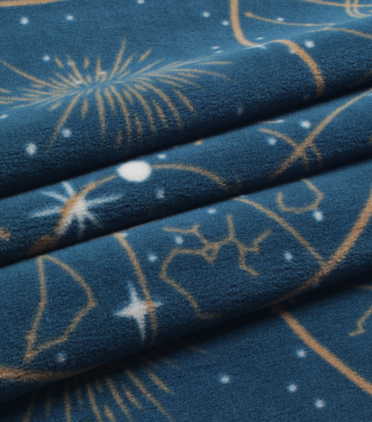 Celestial Gold Stars on Blue Anti Pill Fleece Fabric