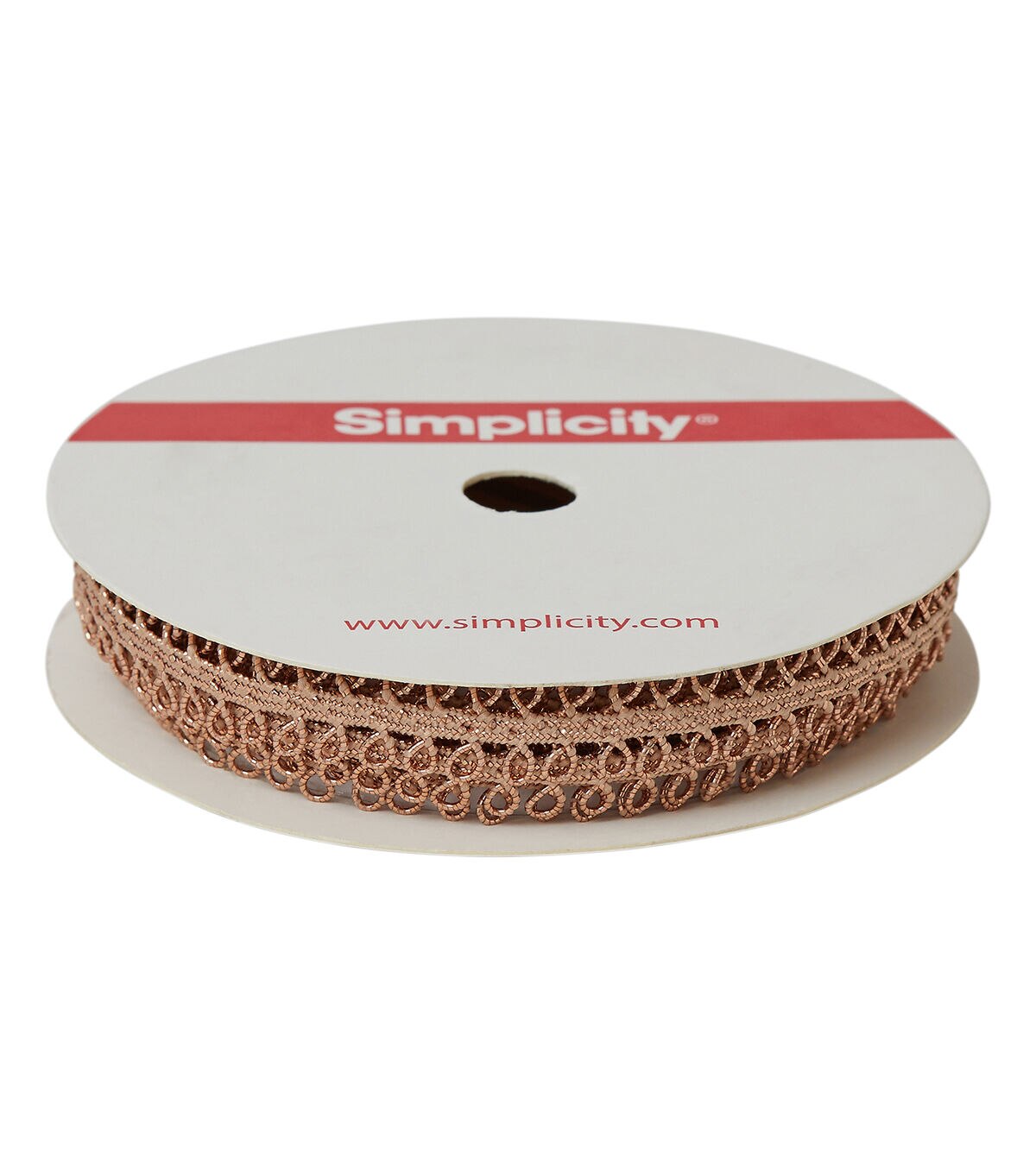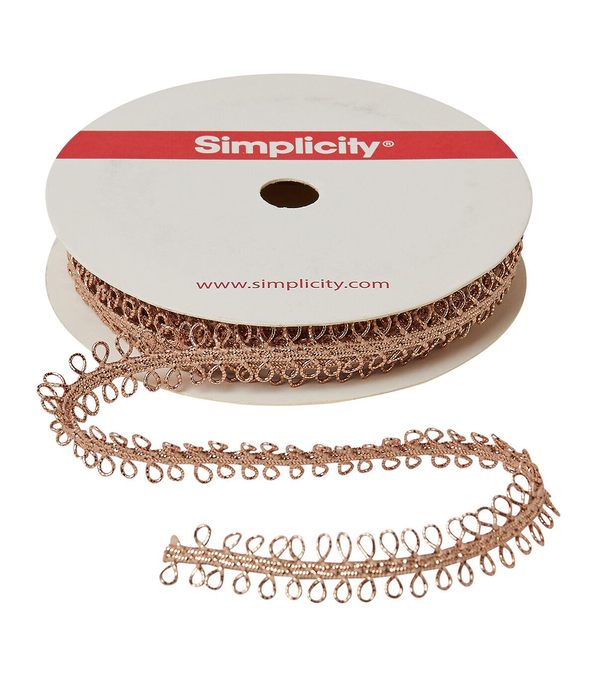 A champagne metallic double looped trim 3/8 inches wide and a polyester/metallic blend. Perfect for apparel design, home décor inspirations and so much more!