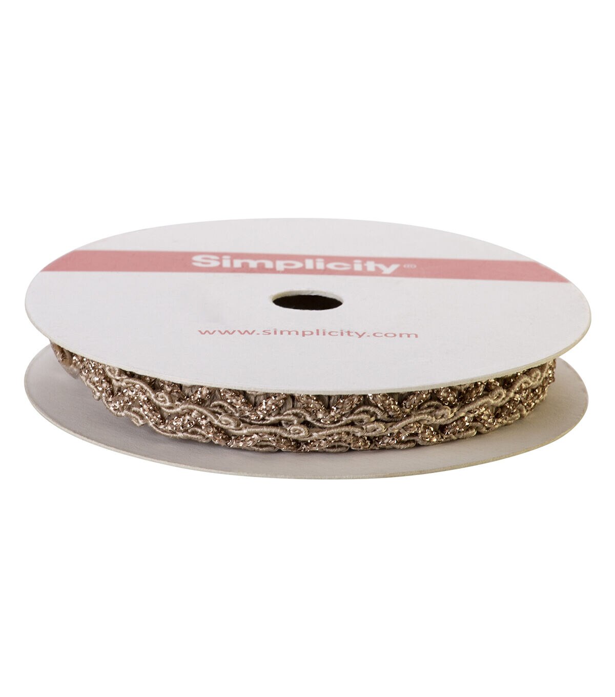 This 5/16 inch champagne scroll trim in 100% polyester. Perfect fo apparel design, home décor inspirations and so much more!