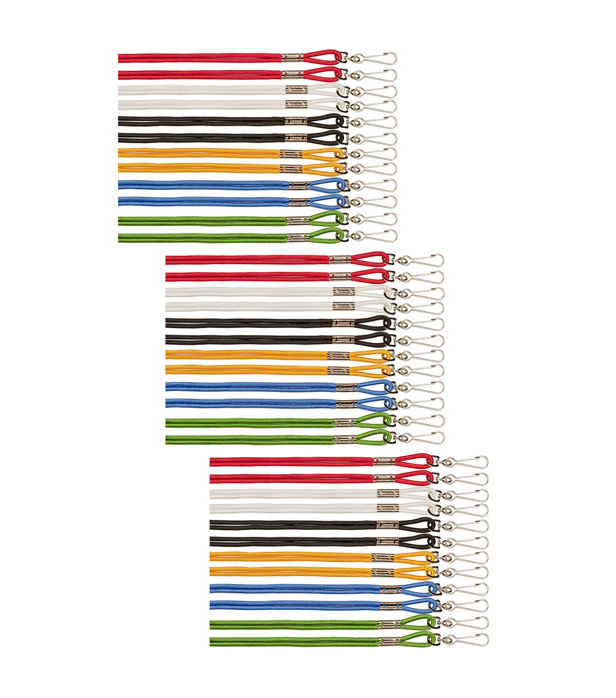 Securely fasten your whistle or name badge with the Champion Sports Heavy Duty Nylon Lanyard. Great for keeping your items close and secure, these lanyards feature a metal J-hook for quick and easy attachment. Each pack includes 12 lanyards in assorted colors: black, royal blue, yellow, green, scarlet and white. Sold as 3 packs for a total of 36 lanyards.