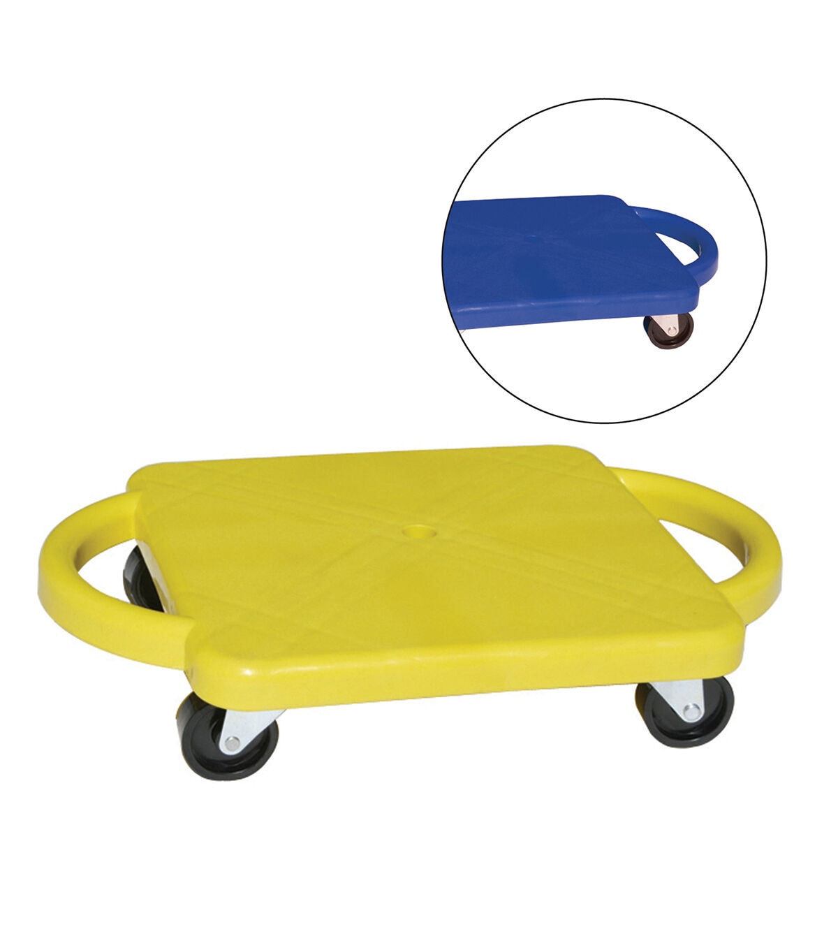 Whether it's a game of scooter hockey or a group scooter train, the Champion Sports Plastic Scooter with Handles offers plenty of fun for the gym or playground. The scooter has non-marring rubber swivel casters that won't markup indoor floors, and easy grip handles for extra stability. Equipped with a wide 12 x 12-inch base, the scooter can be used while sitting, kneeling or in a prone position for a variety of games and activities. It promotes balance, strength and creativity in a fun recreational activity.