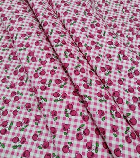 Cherries On Pink Plaid Novelty Cotton Fabric