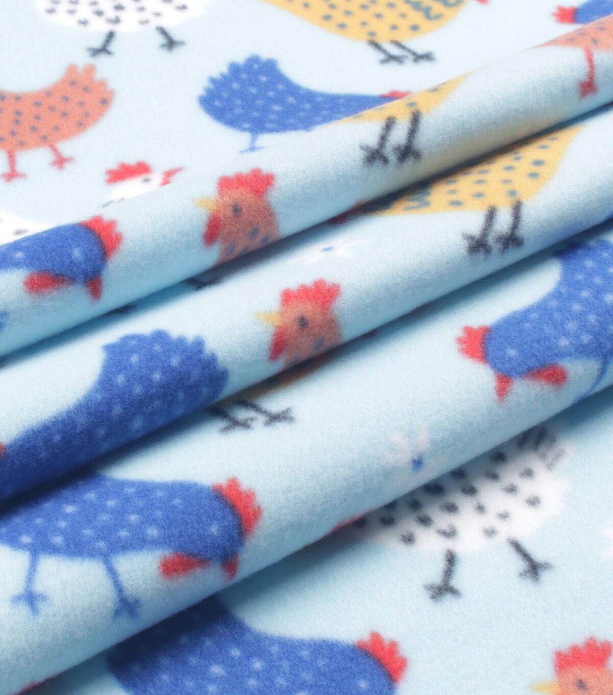 • Chickens on Blue Blizzard Fleece Fabric