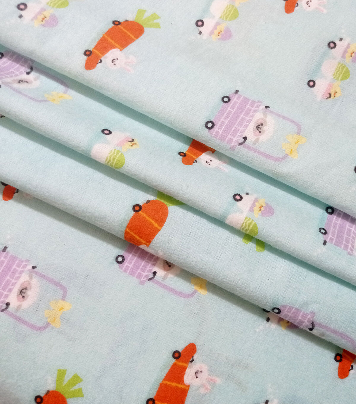 Looking for a fabric that's both cute and cozy? Look no further than Chicks & Bunnies In Cars on Blue Super Snuggle Flannel Fabric by POP! This adorable fabric features a charming design of chicks and bunnies riding in cars on a soft blue background. And with its super snuggle flannel material, it's perfect for creating blankets, and more.