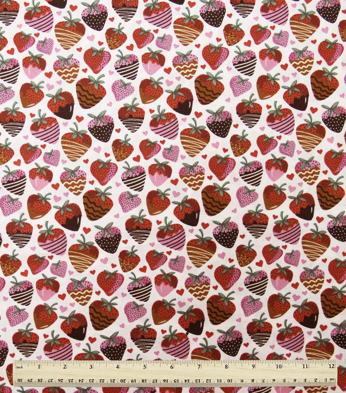 • Chocolate Dipped Strawberries on White Valentine's Day Cotton Fabric