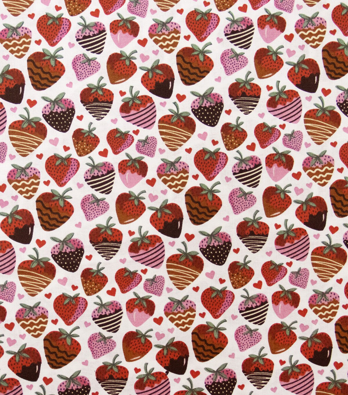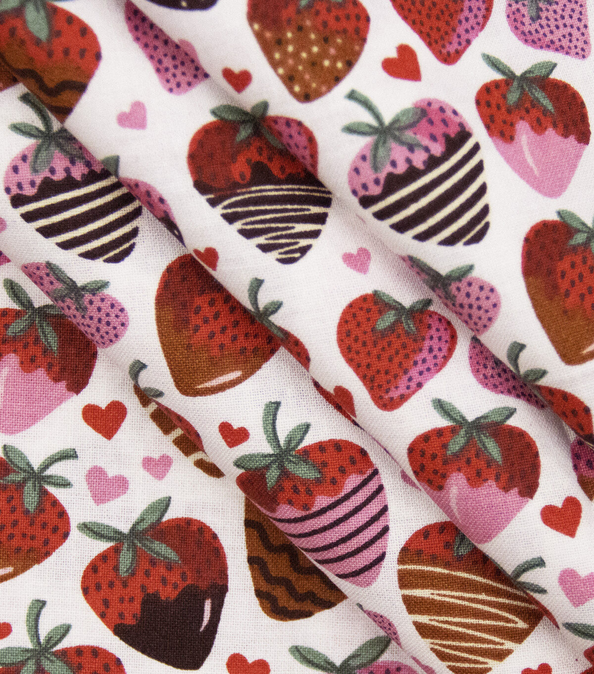 Chocolate Dipped Strawberries on White Valentine's Day Cotton Fabric