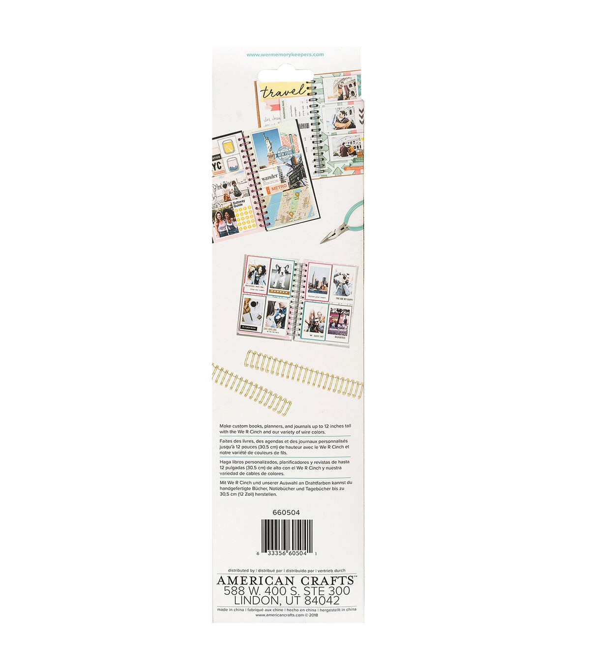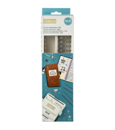 Make custom books, planners, and journals up to 12 inches tall with the binding wires and We R Cinch (71050-9). A variety colored binding wires are available; each sold separately. Box measures 3.5 x 13.5 x 2.5 inches with hang tab and includes two white and two black binding wires 1.75 x 11.375 inches. Binding wires close to 1 inch when used with cinch machine. Recommended for ages 18 and up. Imported.