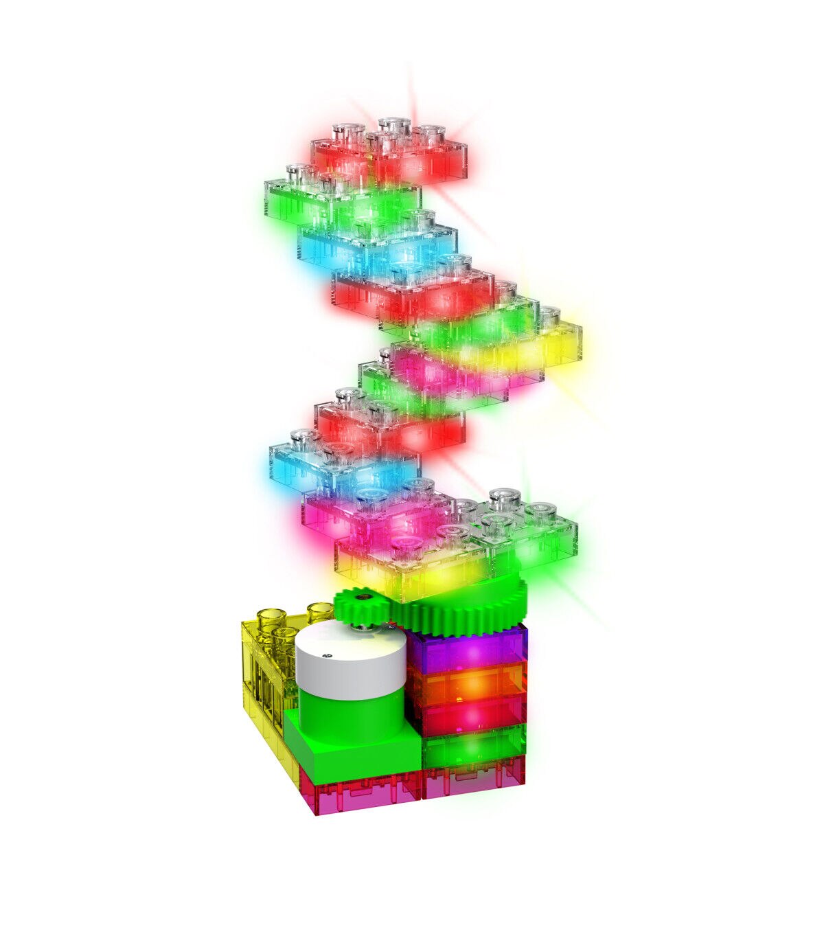 This set is ideal for in-class, home schooling or teaching through e-learning of STEM. The colorful building blocks contain electronic components such as a battery module, a geared motor module, a gear module and LED modules. Includes online animated curriculum only available with E-Blox Student Sets. Lessons cover Building Fundamentals, Electricity & Circuits, Motors, Gears & Light.