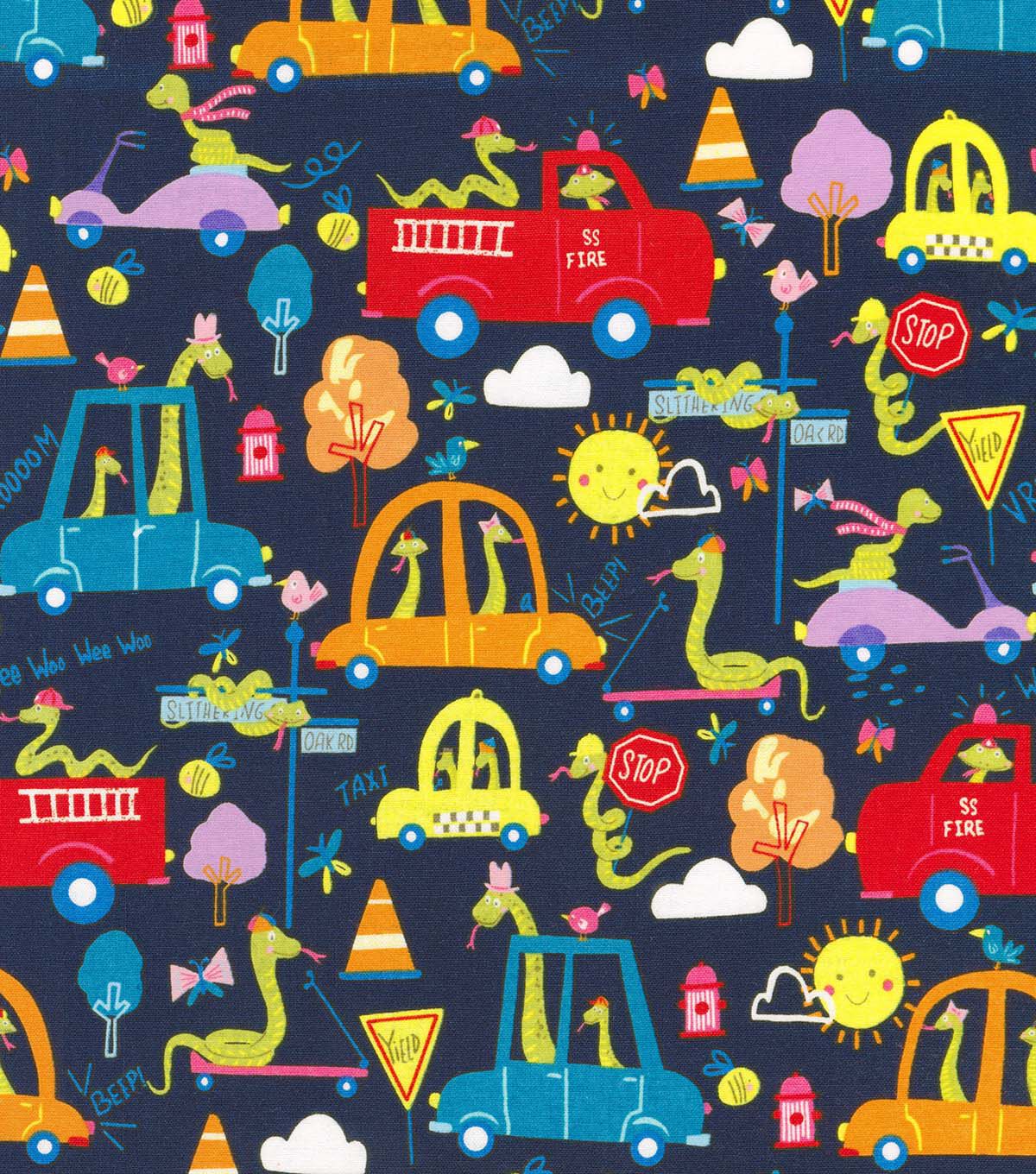 • City Snakes on Navy Novelty Cotton Fabric