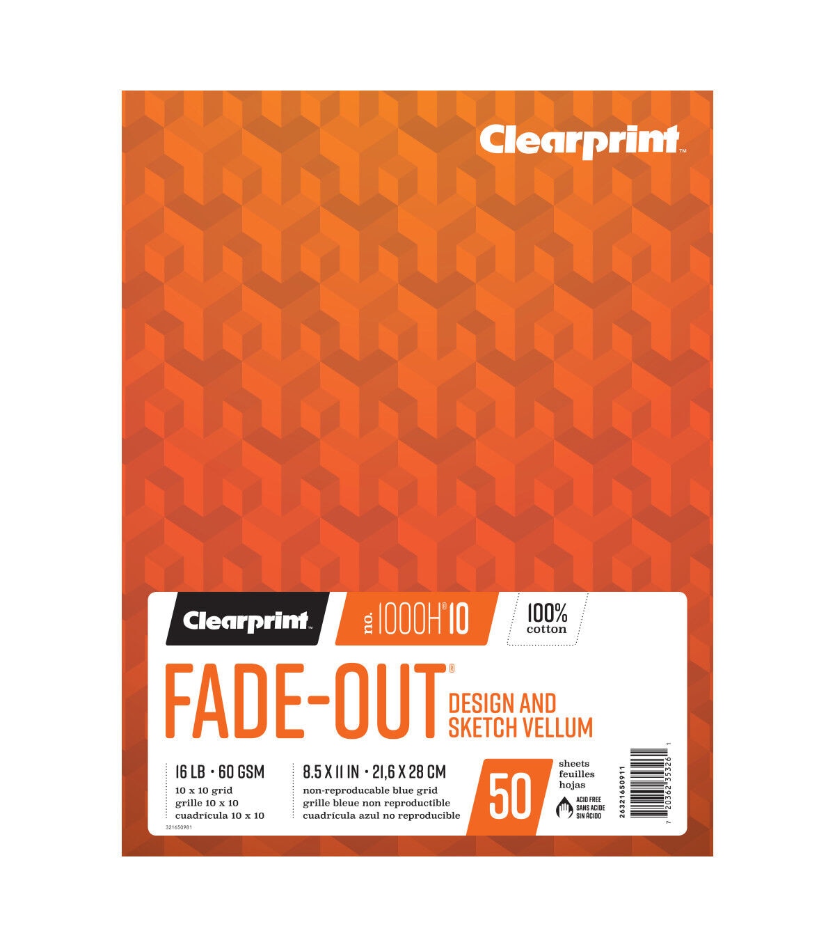This Clearprint Vellum Pad features smooth 1000H transparent vellum that retains strength, stability, transparency and printing qualities under exposure to heat, light and atmosphere. Pen and pencil lines come out sharp and clean without feathery edges or ghosting. The paper will not yellow or brittle with age. This paper features a non-repro blue grid that vanishes when reproduced, ideal for precise layouts, compositions and designs.