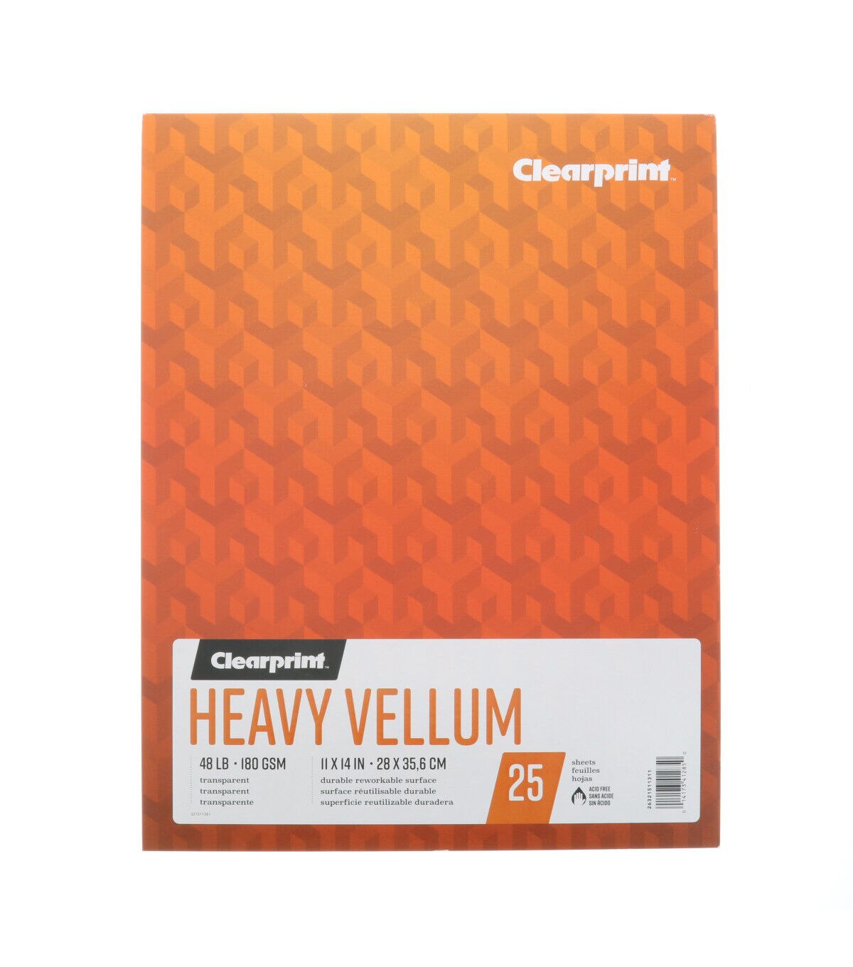 This Heavy Vellum pad is the thickest in the Clearprint range, and features a transparent durable surface appropriate for a wide variety of media including alcohol and acrylic based markers, gouache and a variety of dry media.