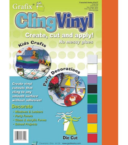 Decorate your home for the holiday season with the Cling Vinyl Sheets. The package contains nine vinyl sheets in bright colors to add a colorful twist to your home decor, scrapbooks and school projects. Create fun plastic box appliques, school logos, signs, greeting cards and party favors using these colored cling vinyl sheets. Make adorable cut-outs with these sheets that will cling to any surface to add creative touch to your paper and craft projects.