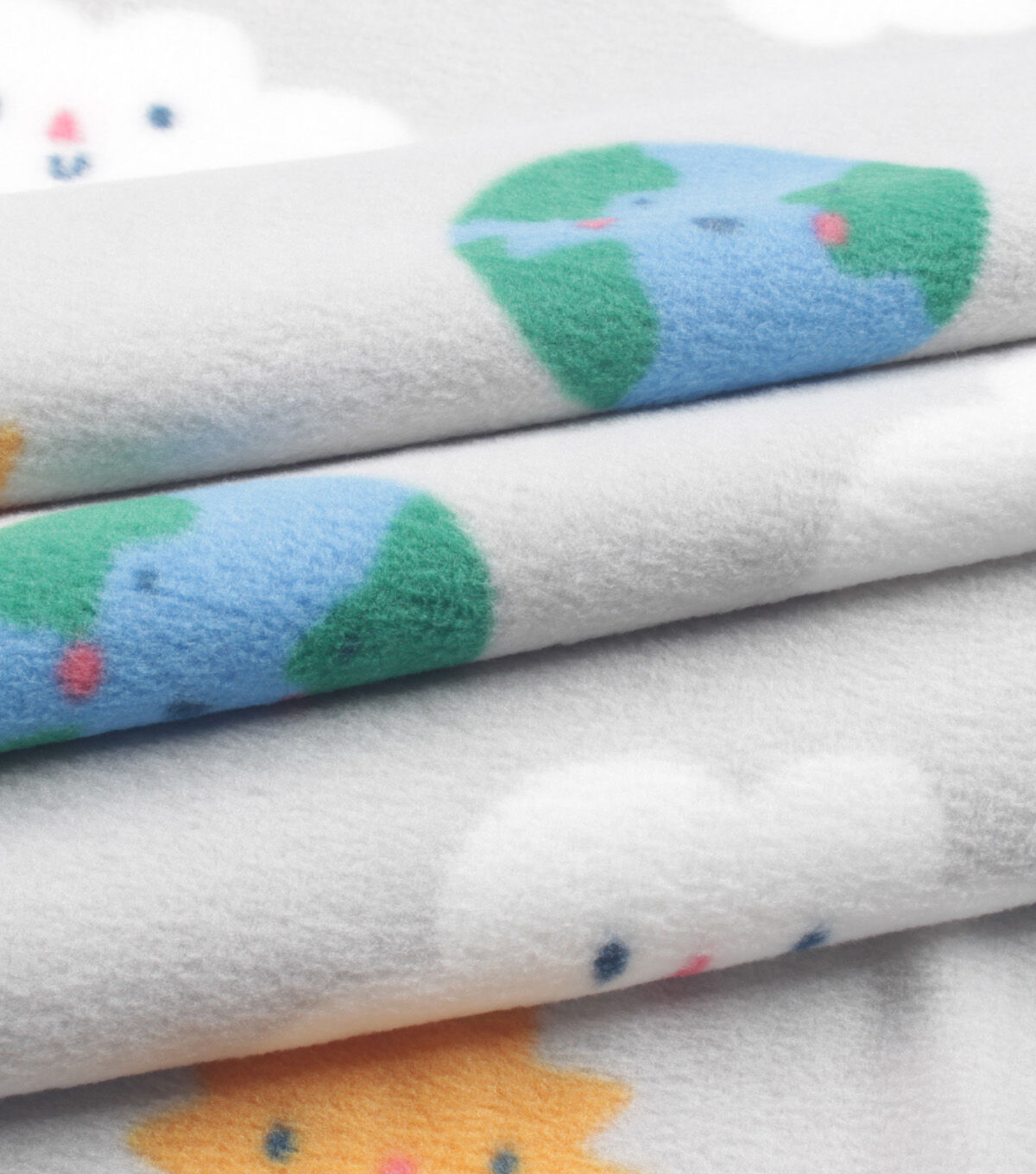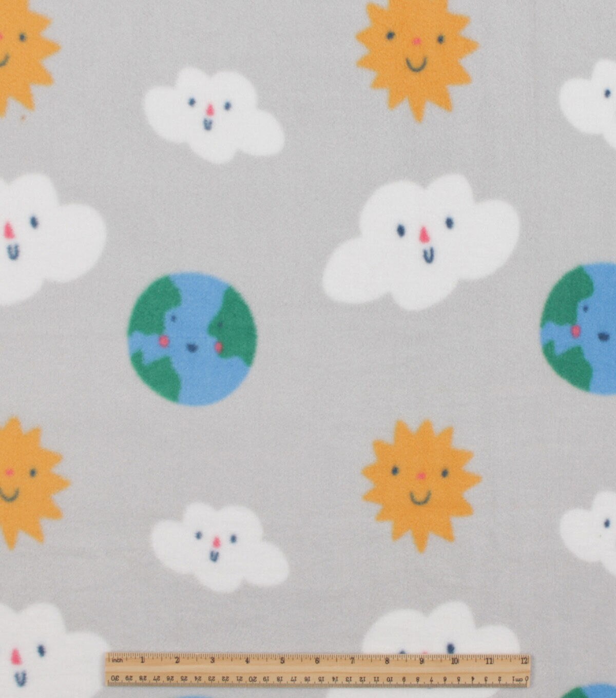 • Clouds & Earth on Gray Anti Pill Fleece Fabric by POP!