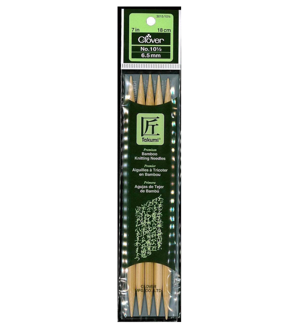 7" Double Point Clover Bamboo Knitting Needles, Set of 5 is 60% lighter than aluminum, they have a tempered, round-shaped point that never splits yarn. Smoother yarn feed makes knitting easier. Imported. U.S. sizing. Set of 5 individual needles.
