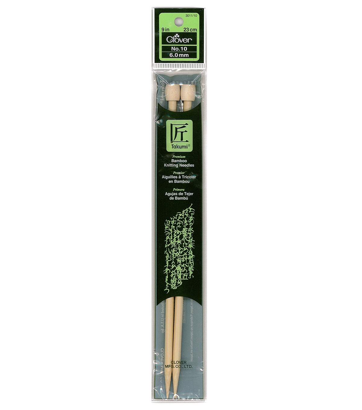 • Clover 9" Bamboo Size 10 Single Point Knitting Needle Set