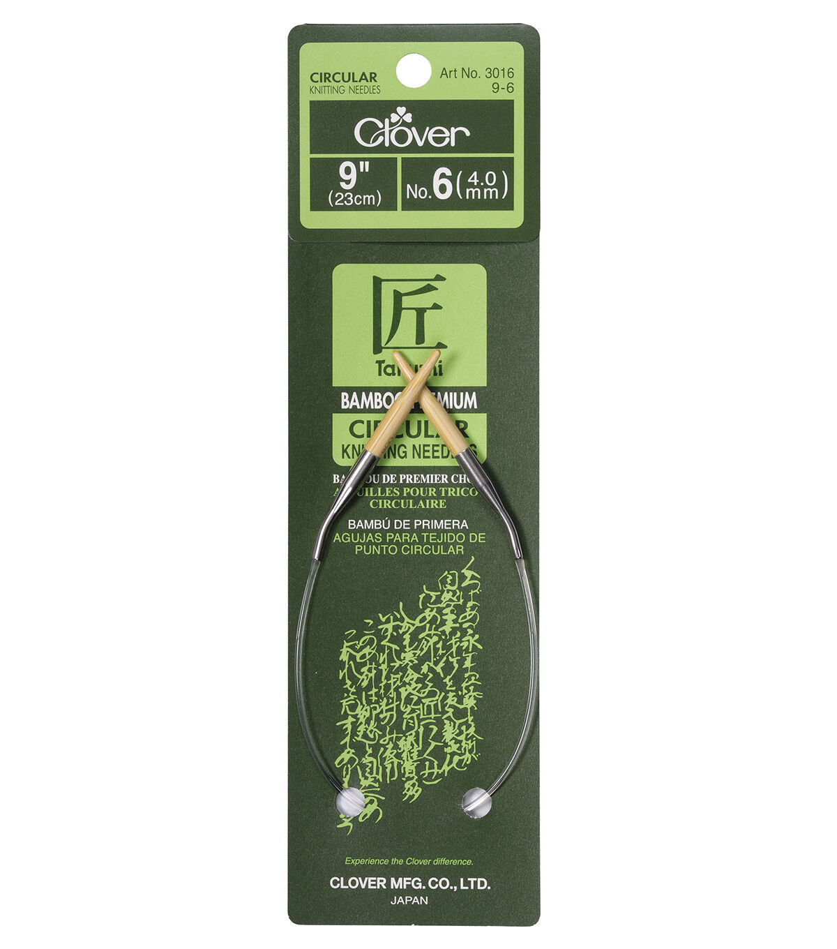 The shortest length circular needle available. The design of the Clover 9in circulars vary slightly from the other length circulars. The 9in incorporates an angle in the ferrel between the bamboo needle and the clear flexible cable. The angle keeps stitches where they need to be and enables stitches to pass from one needle to the other easily. Perfect for sleeves; cuffs; baby items and more. Imported. "