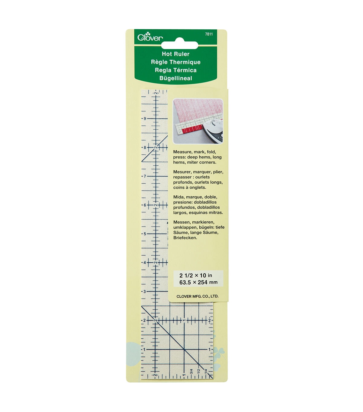 Complete your measuring and pressing tasks easily using the Clover Needlecraft Hot Ruler. This hot ruler allows you to measure, mark, fold and press deep and long hems and mitered corners. You can use it to make trendy ruffles, purse straps, pillowcases, full skirts and more.