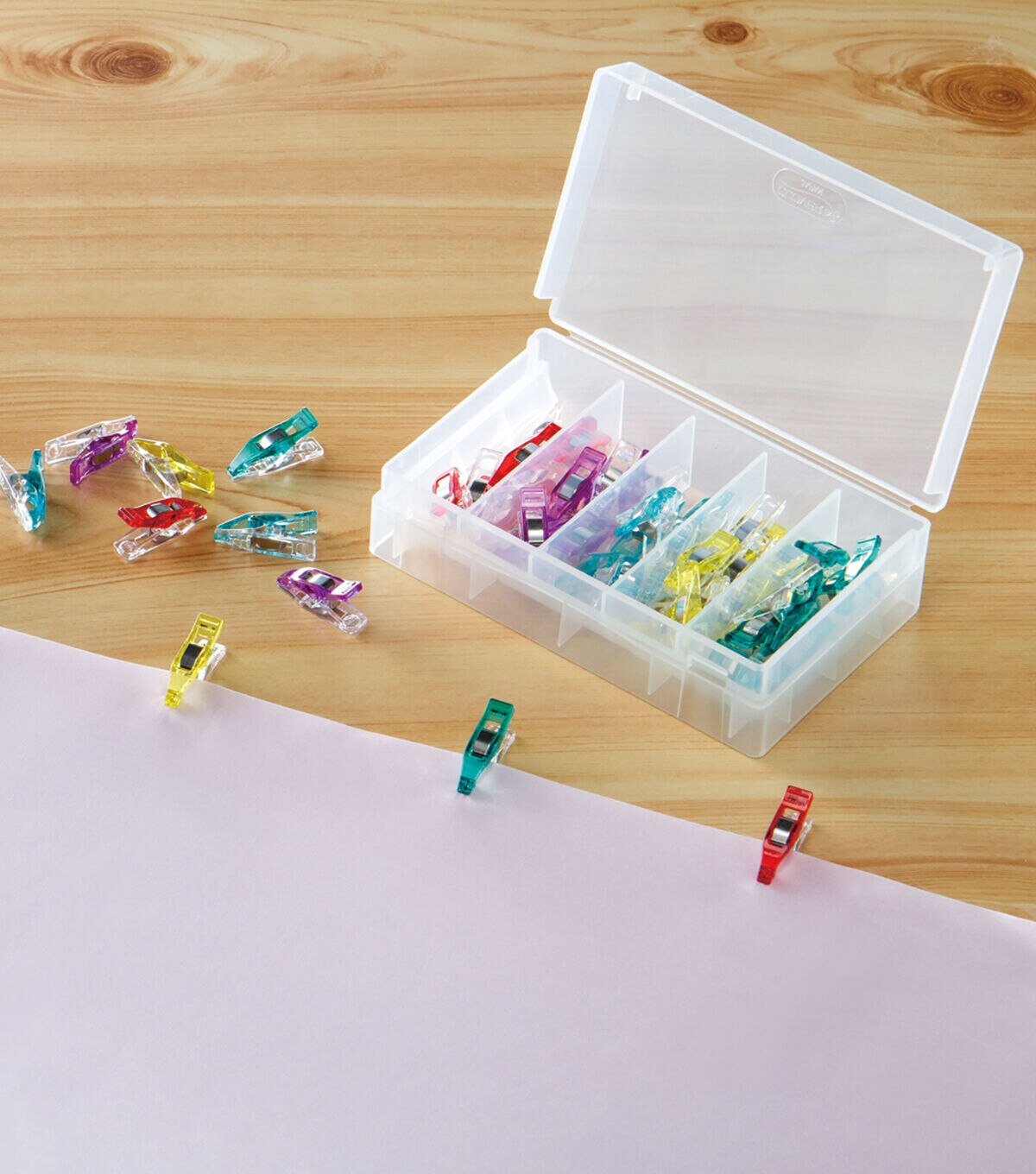 The Clover Needlecraft Mini Wonder Clips are perfect for holding fabric pieces together in tight sections when working on patchwork projects. These clips can also be used when creating doll dresses and are a great alternative to pins. They are designed with a flat base that ensures easy feeding to the presser foot. This pack includes 50 clips in assorted colors.