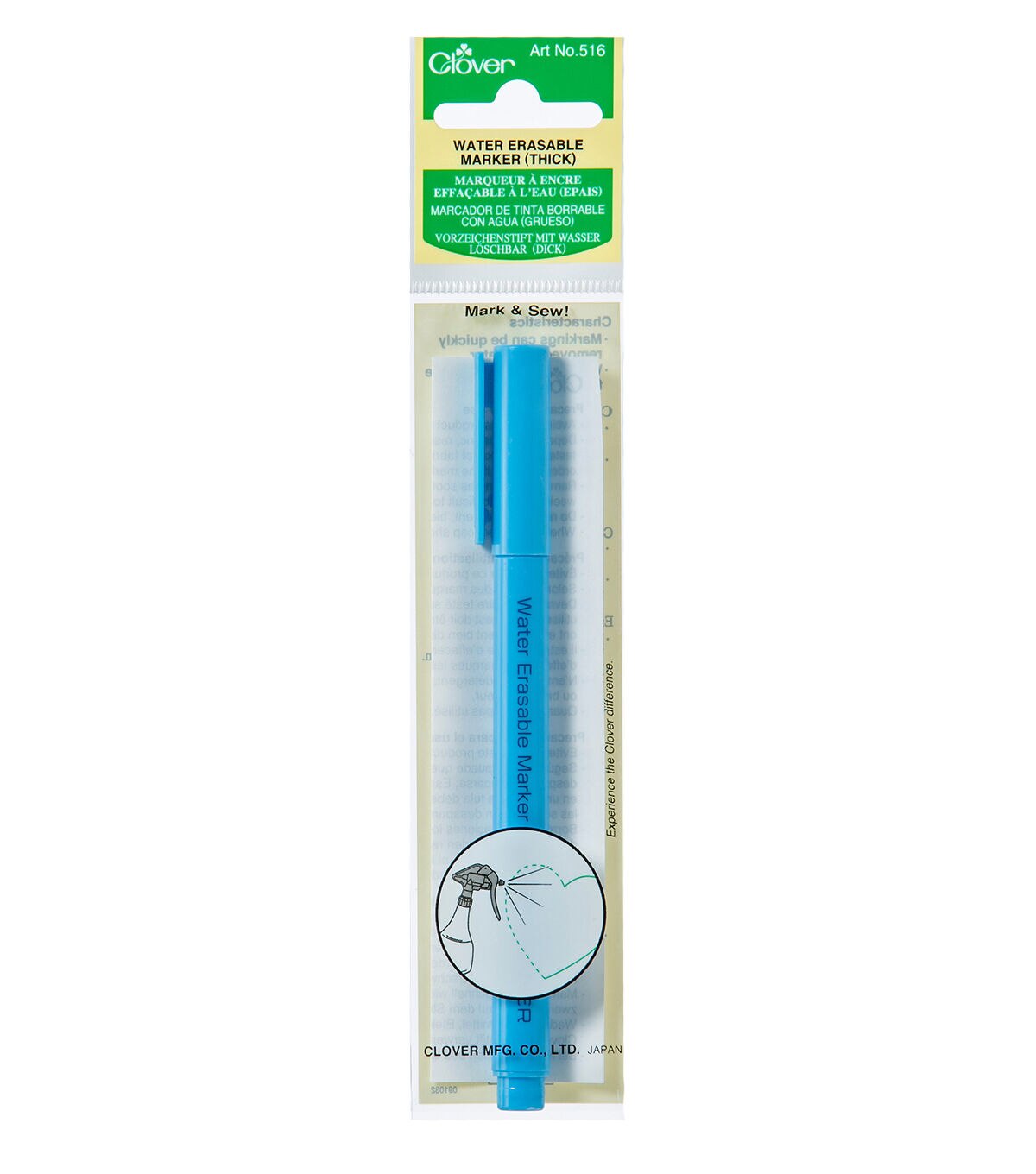 The Clover Water Soluble Thick Point Marker is ideal for copying and marking detailed designs on fabrics. The markings made by this marker are water-soluble and can be easily removed with a damp cloth. It will be great for sewing, quilting, embroidery and other crafts.