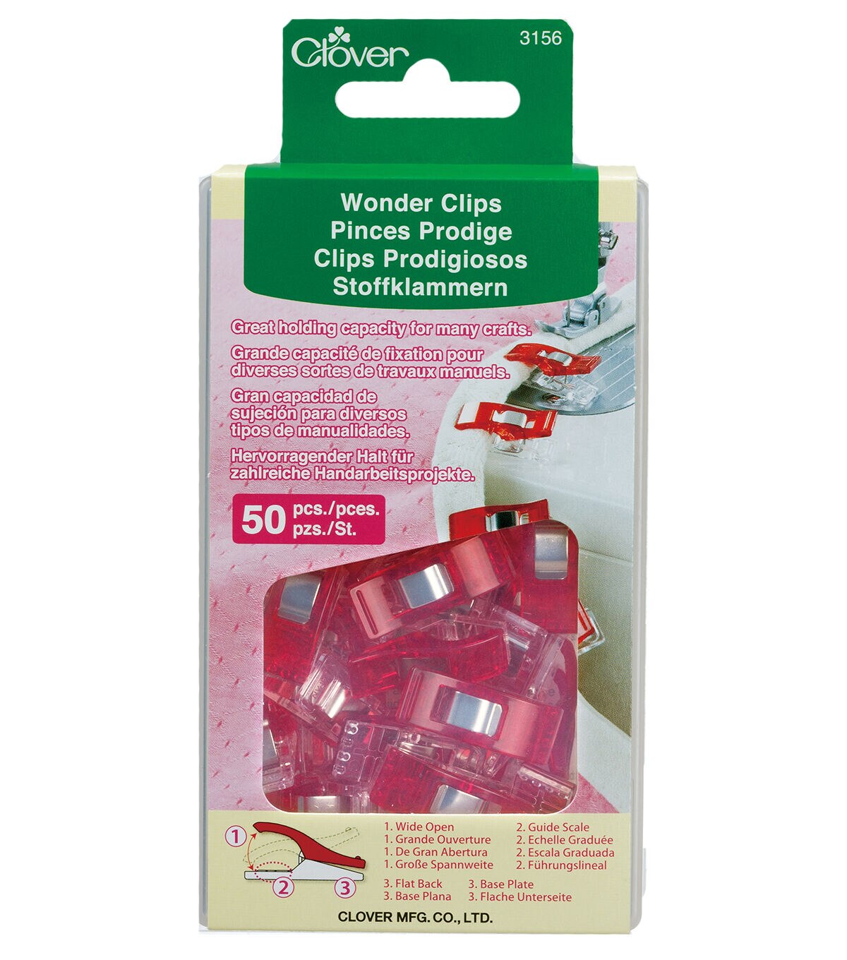 Keep layers of fabric in place for sewing, quilting or more using the Clover Wonder Clips. These mini fabric clips offer a firm grasp even while on the go. They are safe to use and do not prick or pierce like pins. The flat clip base is easy to use while feeding the fabric into the presser foot. This pack includes 50 clips.