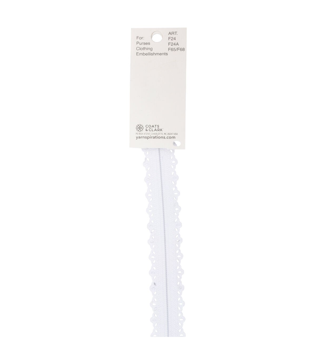 Dainty and charming, the Coats & Clark Closed Bottom Cutwork Fashion Zipper is ideal for use on delicate bridal, evening and day dresses. This 7-inch long fashion zipper showcases lovely cutwork along the edges. As a design element, it's narrower than other Coats coil zippers. Take your pick from the solid shades that it comes in, each sold separately, to match your fabric project.