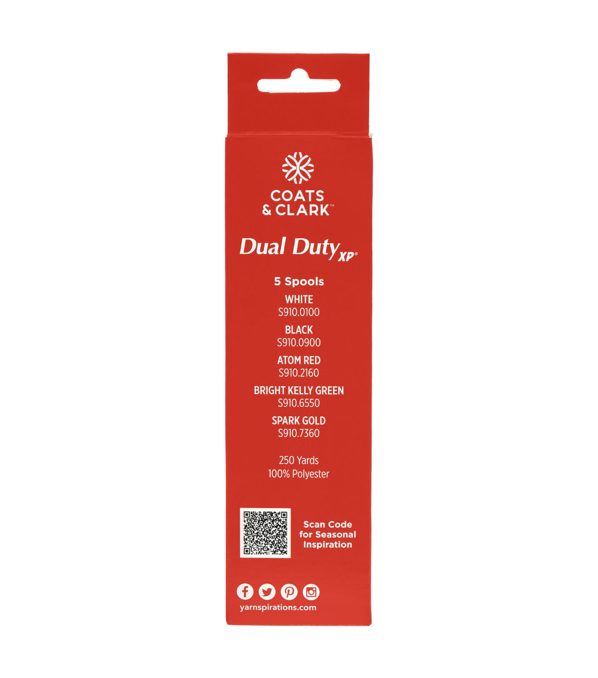 Create wonderful holiday projects with various adorable patterns, using the Coats and Clark Dual Duty XP General Purpose Thread. This exclusive thread pack contains 5 spools of 250 Yard Coats & Clark thread in White, Black, Atom Red, Kelly Green and Spark Gold. Made with advanced technology, this thread features polyester-wrapped core-spun construction that makes sewing easier. The general purpose thread comes with a smooth finish and adds soft texture to your garments, linens and home decor accessories. Ideal for hand-sewing and machine-sewing both, this general thread is a must-have for all of your holiday sewing projects and beyond.