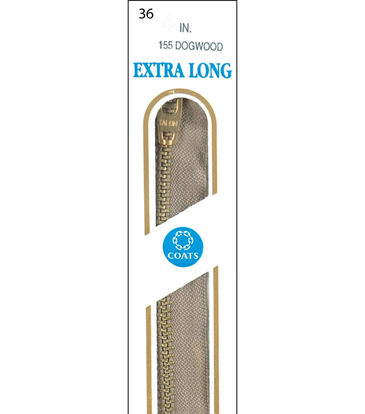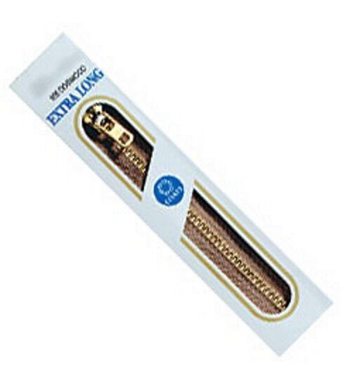 This metal zipper is 100% polyester tape with #4 brass teeth. Available in 4 sizes - 24"-36" lengths, it is ideal for slipcovers, pillows or other fabric craft projects.