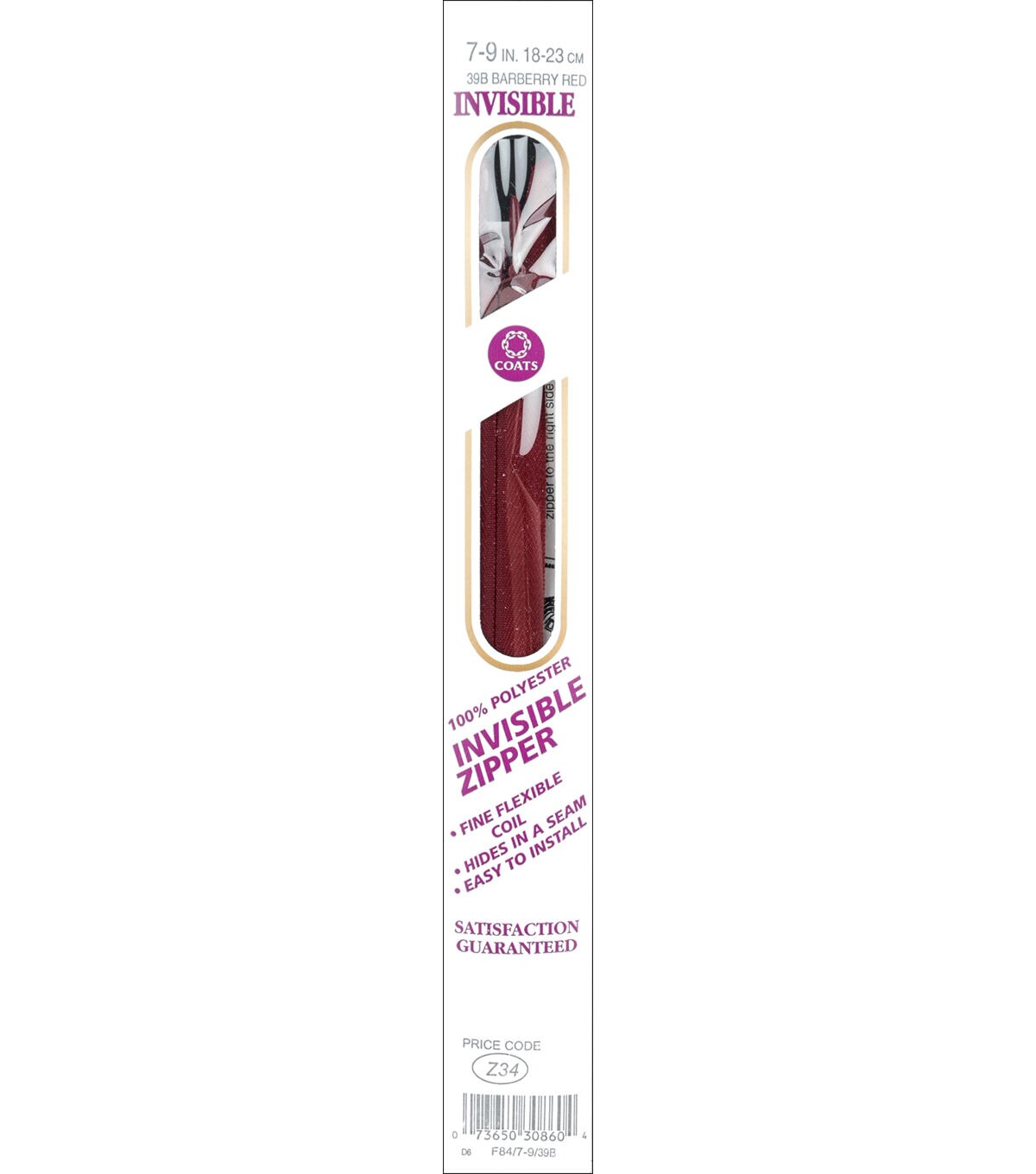 Coats Invisible Zipper is a closed end polyester coil zipper that is flexible yet strong. When stitched into a garment, it becomes hidden in the seam and only the pull tab is visible. Due to the smaller size of our coil, for best results use Coats Invisible Zipper Foot when installing.