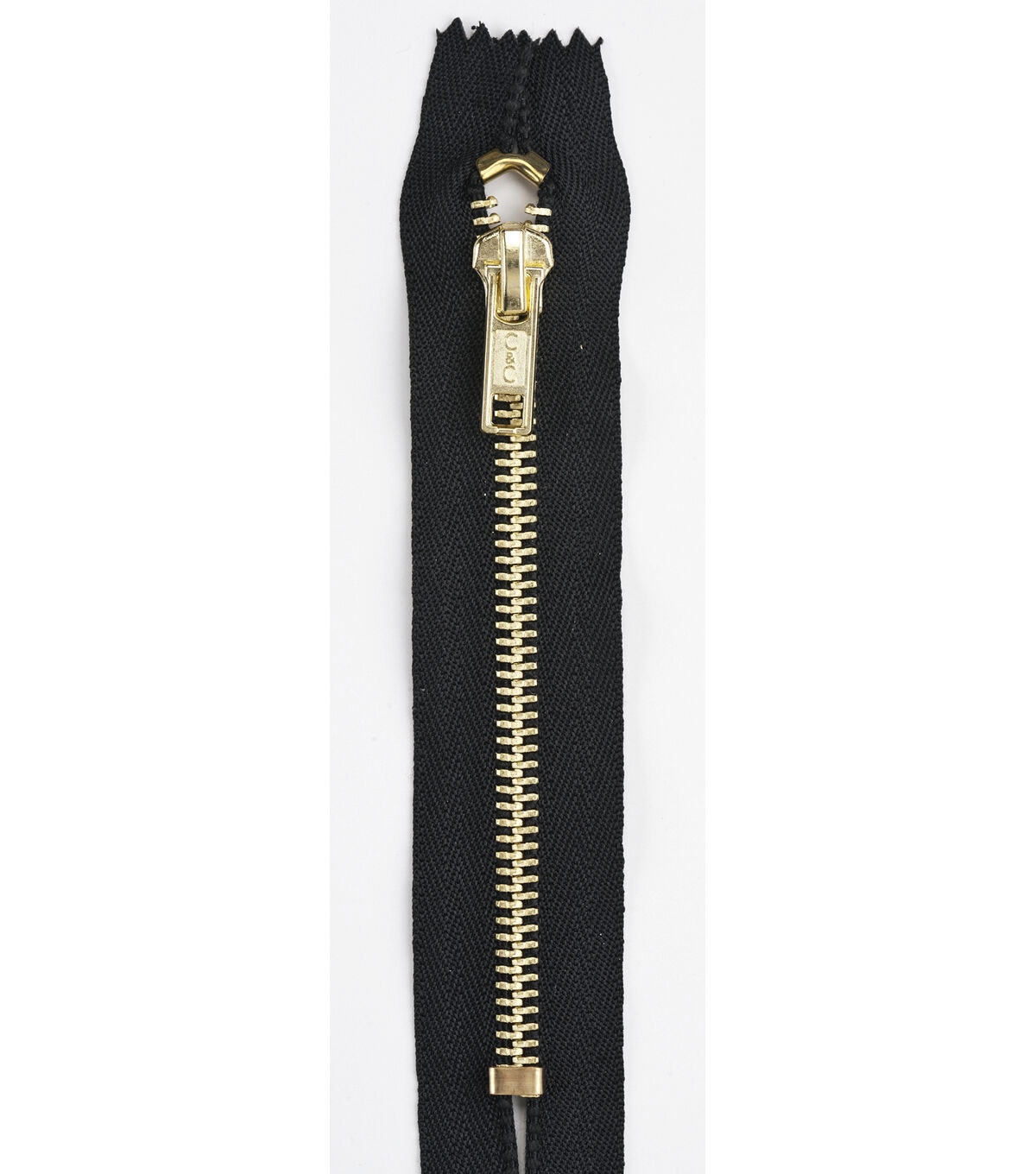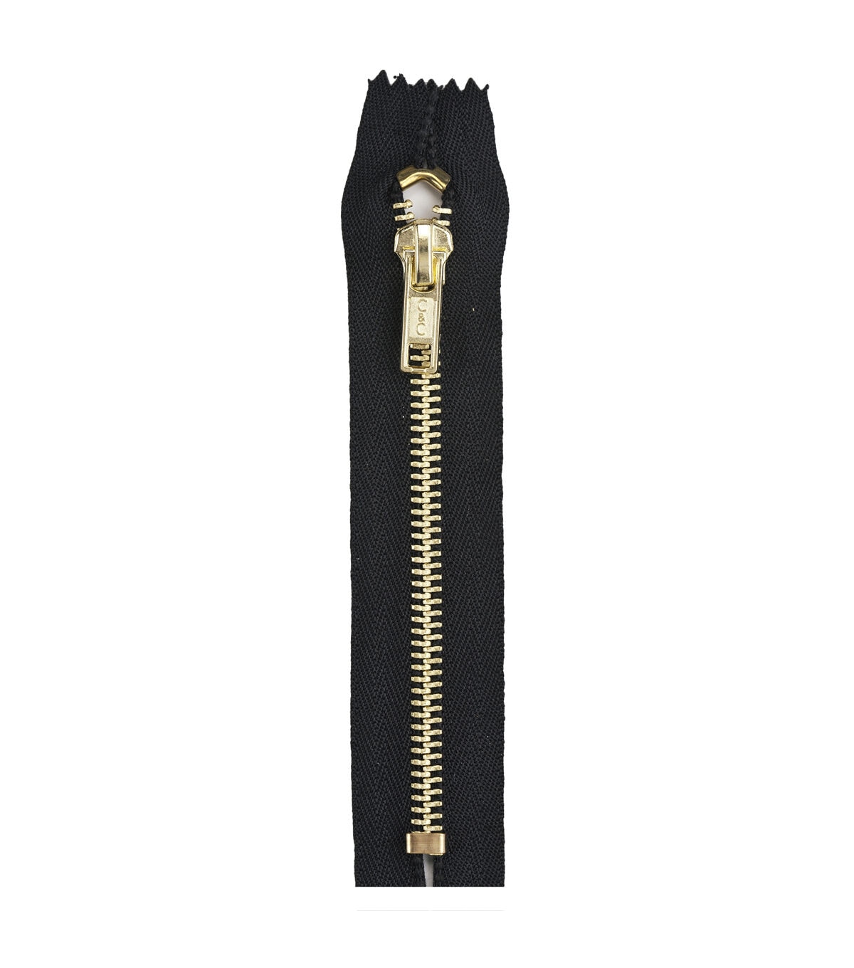 Coats & Clark Pocket Zipper-Brass & Black is both functional and fashionable. Designed with metallic teeth and classic black tape, it will complement any stylish apparel design. This pack contains one 5-inch black zipper with brass teeth and a closed bottom. It is available in an array of colors, each sold separately.