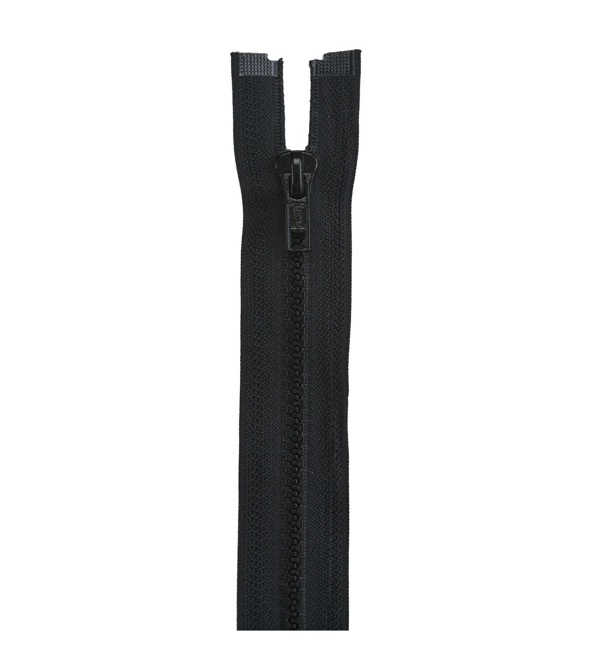 This zipper has 2 sliders with polyester teeth that are actually formed from polyester pellets that are melted and molded right on the zipper tape. 100% polyester tape, teeth will not freeze or corrode. Ideal for parkas, ski jackets, and ski pants.
