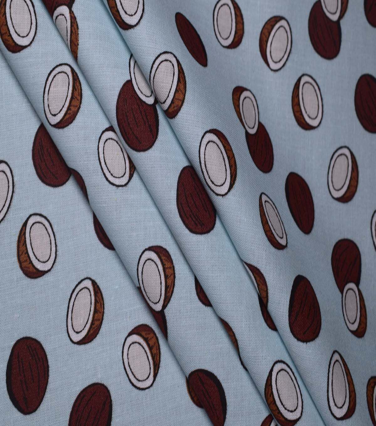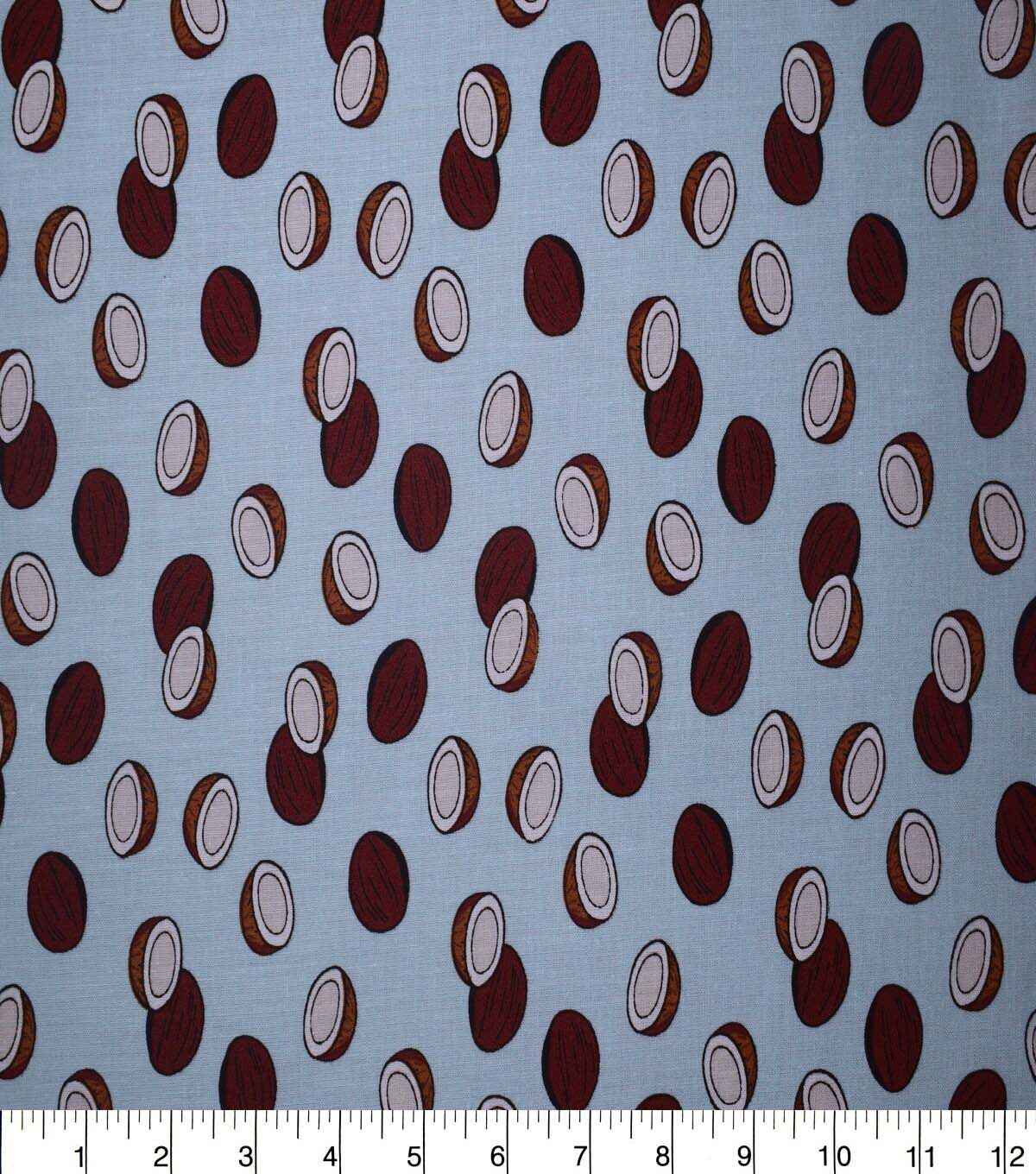 Get Tropical with Coconuts on Light Blue Cotton Fabric by Quilter's Showcase
