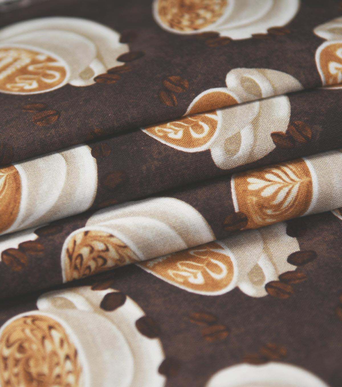 Enjoy Your Morning Coffee with Our Coffee Cups on Brown Novelty Cotton Fabric