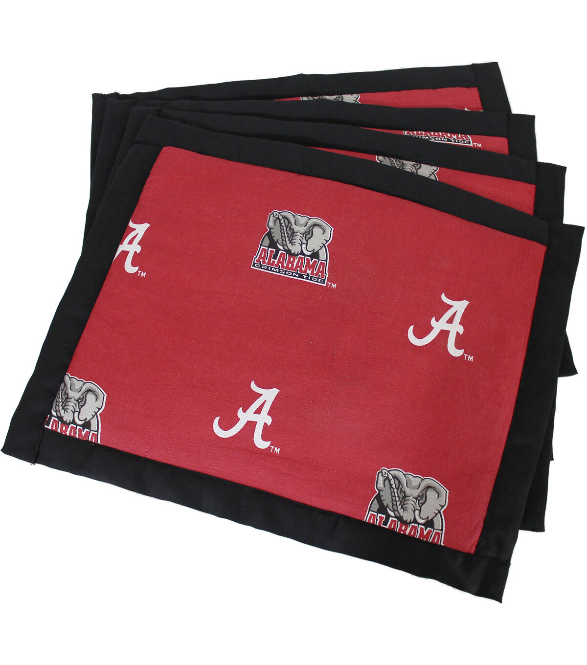 College Covers brand Alabama Crimson Tide placemat is made from 100% cotton for a great looking, easy to clean placemat. This set contains 4 double sided placemats, lightly padded for a sturdy yet soft feel. They measure 18 inches wide by 14.5 inches high and stand .25 inches tall with a little bit of fill between the 2 sides. Our placemats have an all over print design with a solid border for a complete look, they are also 2 sided, so you can use either side. These placemats are a great addition to any tailgate gear, picnics or even in your fan cave. Show off your favorite team in style. Placemats come in a set of four. Machine washable in cold water with like colors, allow to air dry for best results, but can be tumble dried on a low temperature. Imported.