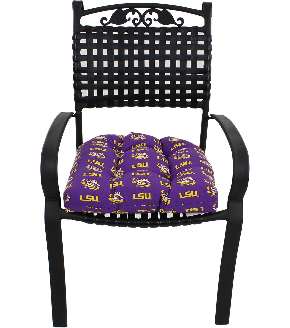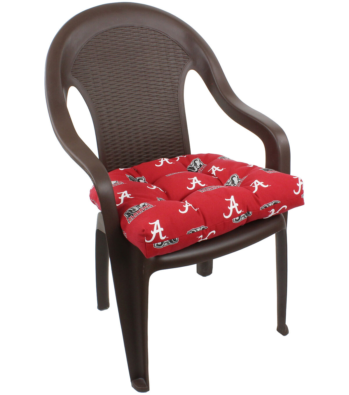Our Sports team patio seat cushion or D cushion is a great addition to any patio or fan cave bar chairs or any standard chair. This cushion is made from 100% polyester for a bright color and durability for either indoor or outdoor use. Seat cushion is filled with a 100-percent polyester fiber sourced from North Carolina and filled right here in Nebraska. Attached ties keep the D cushion securely tied to your chair or patio furniture, circle tacked to eliminate bunching of filling for a perfectly comfortable seat. Lightly spot clean or hand wash with a mild detergent and cool water, allow to air dry. Measures 20-inches long x 20-inches wide x 3-inches high. Does not include a chair, cushion only. College Covers brand is officially licensed by Everything Comfy.