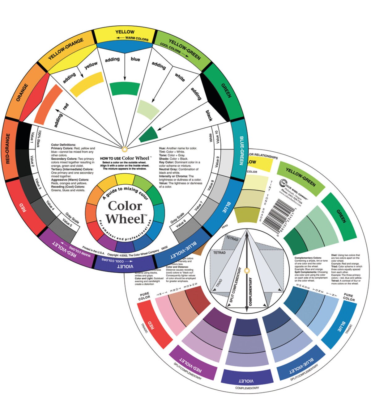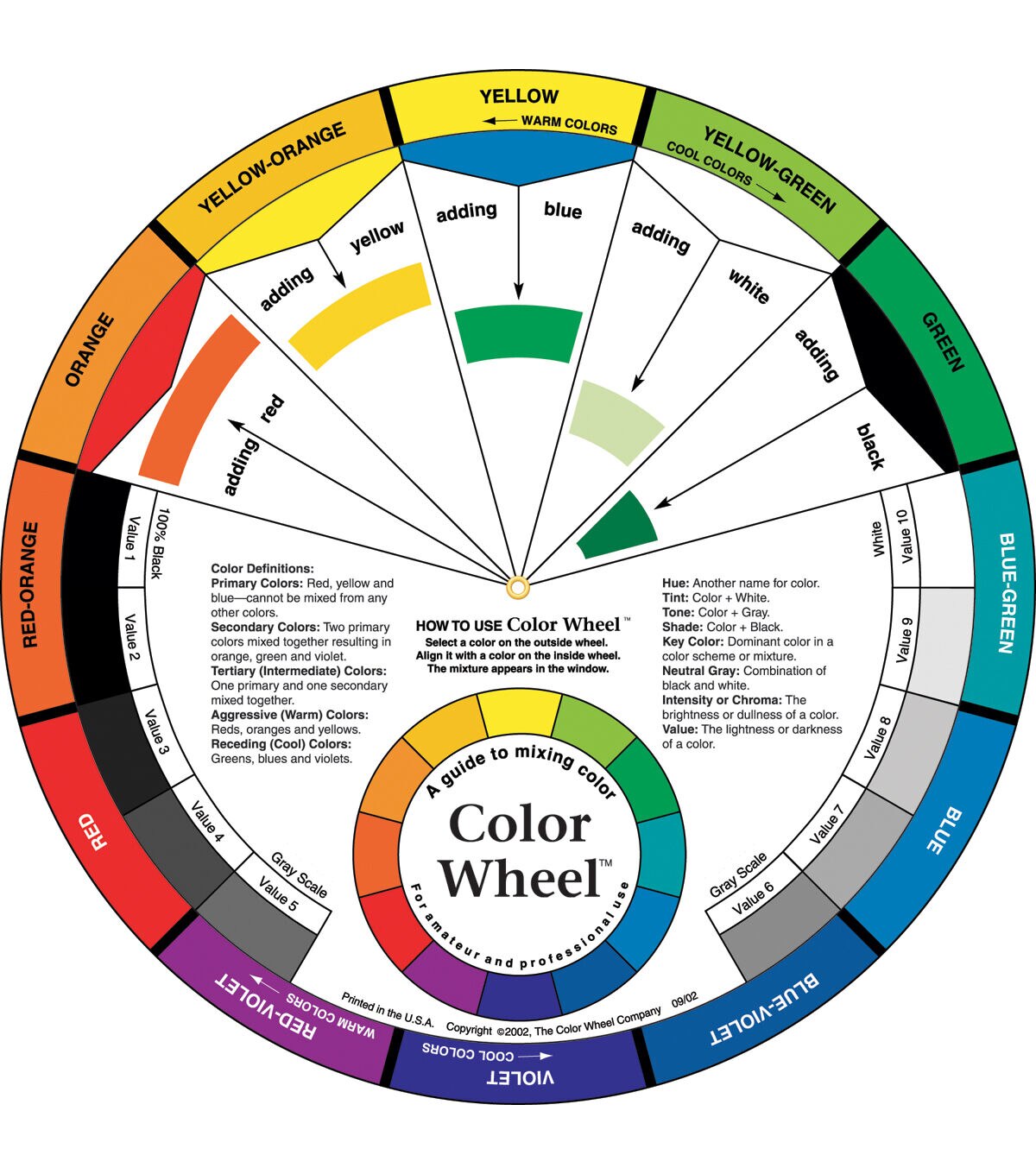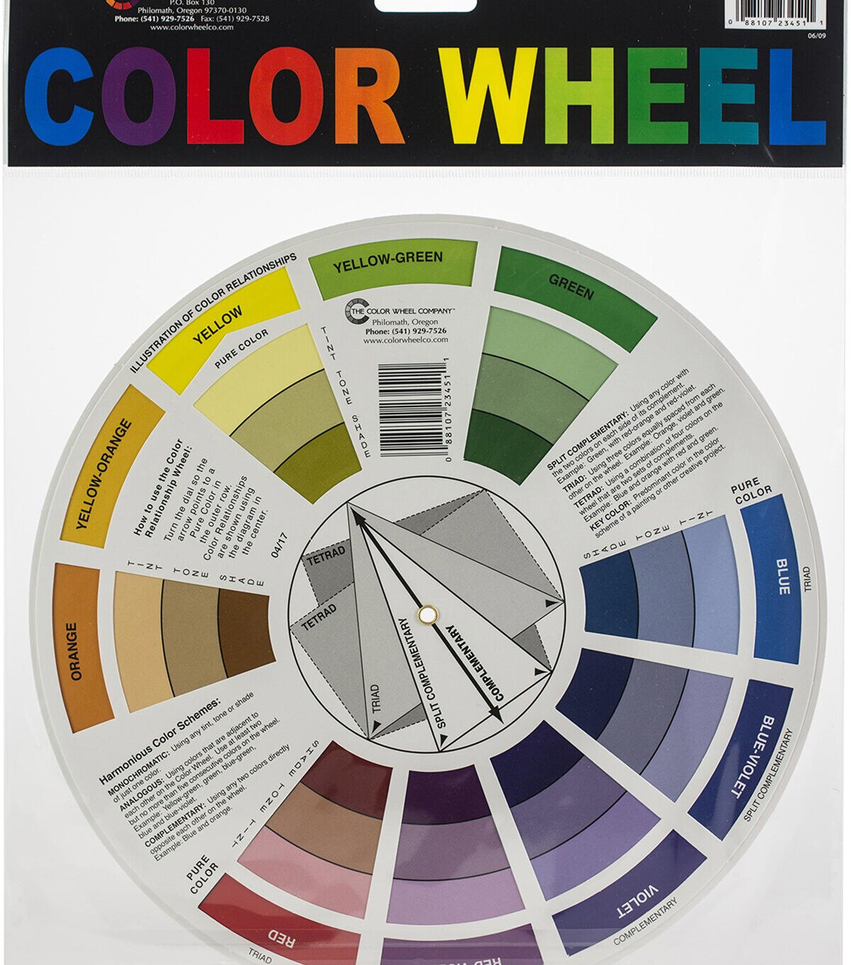 COLOR WHEEL- Color Wheel. This tool for mixing colors defines and illustrates color harmonies so you always have the information you need to create masterpieces. This package contains one color wheel that measures 9-1/4 inches in diameter. Made in USA.