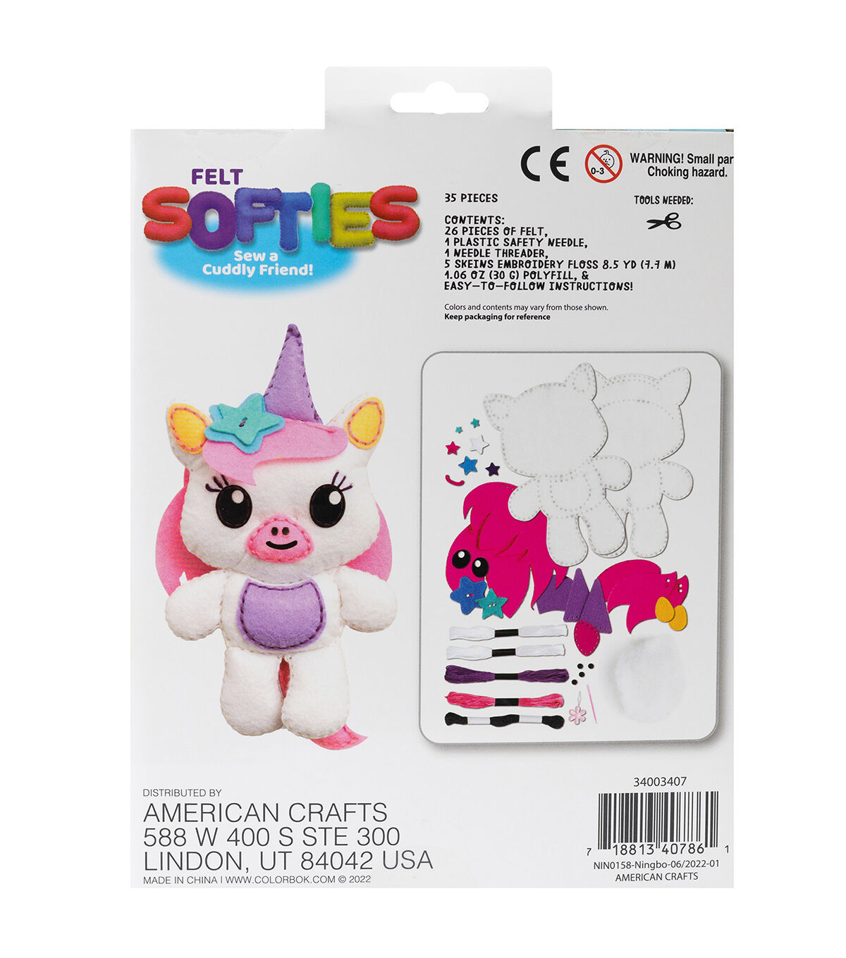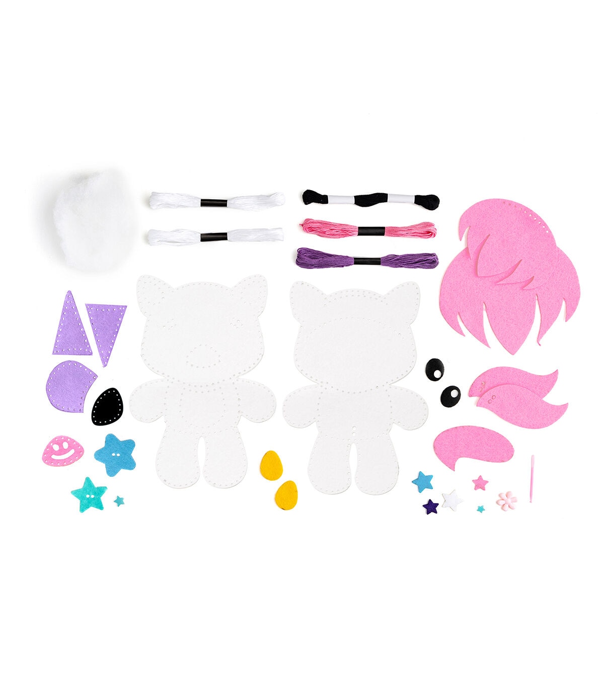 - INCLUDES: 26 pieces of felt, 1 plastic safety needle, 1 needle threader, 5 skeins embroidery floss, polyfill, and instructions